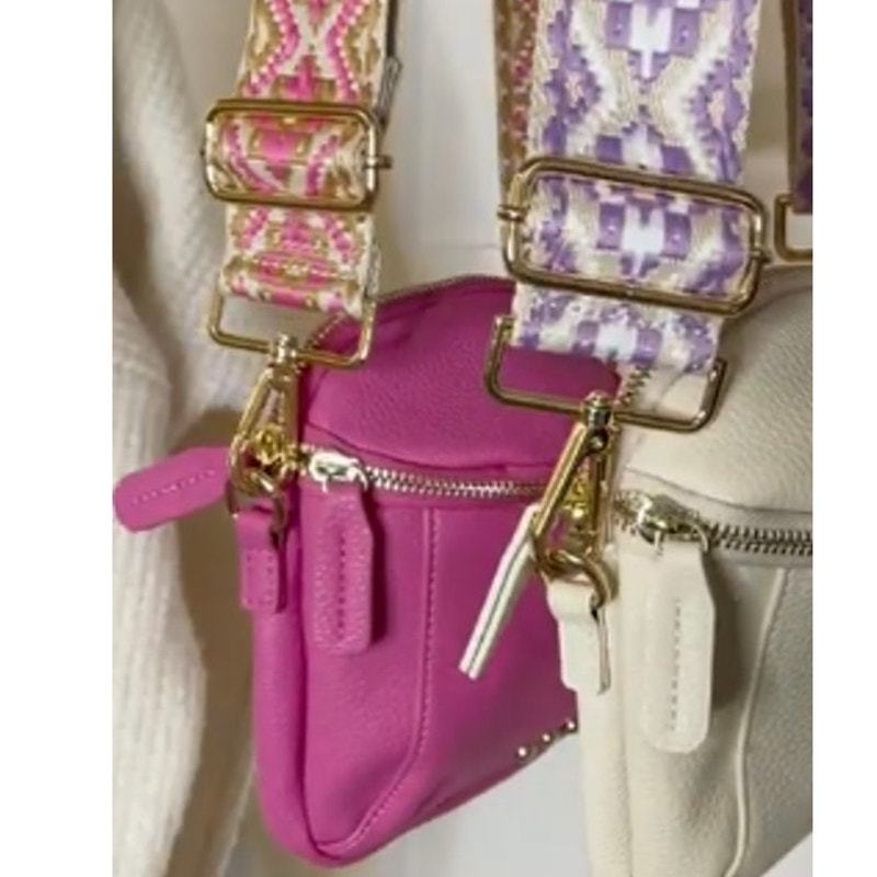 Ellie Boho Tapestry Strap Crossbody Bag Hot Pink