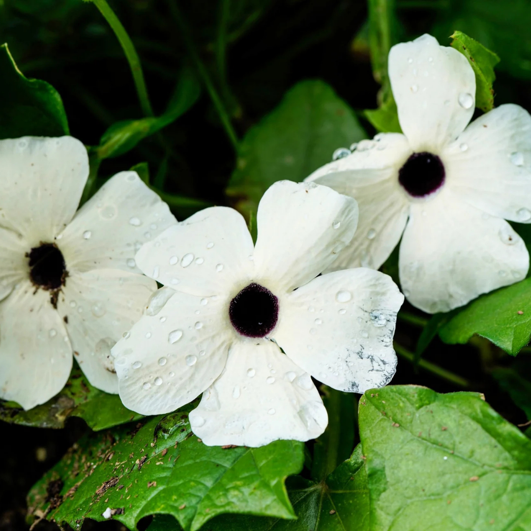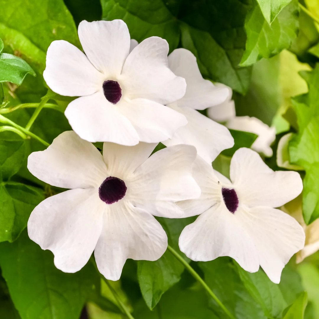 Best for: thunbergia alata seeds, milky white flowers, black eyed flowers, climbing vines, container gardening, indoor plants, unique flowers.