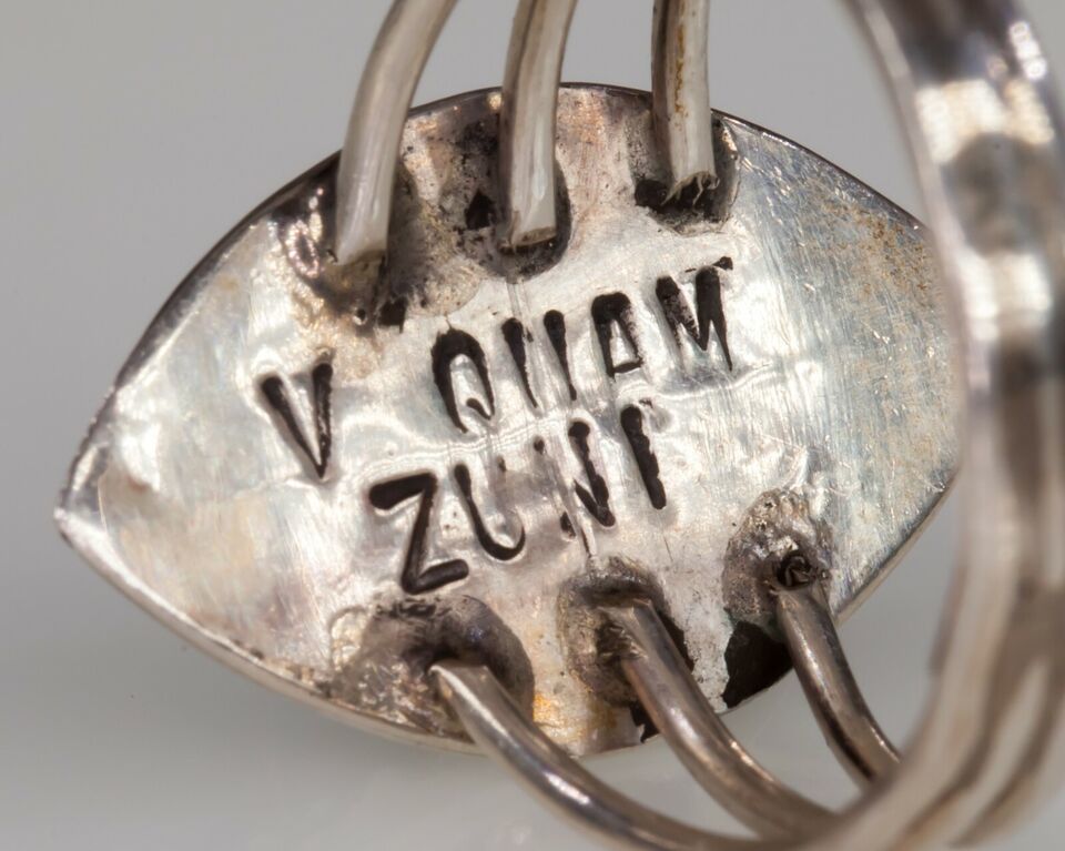 Zuni Sterling Silver Inlay Ring By Virginia Quam Sz 6.50