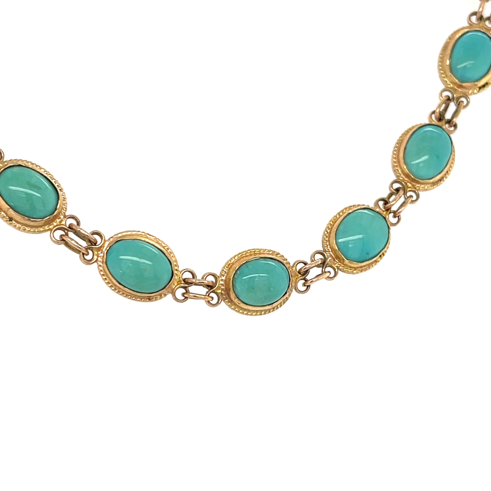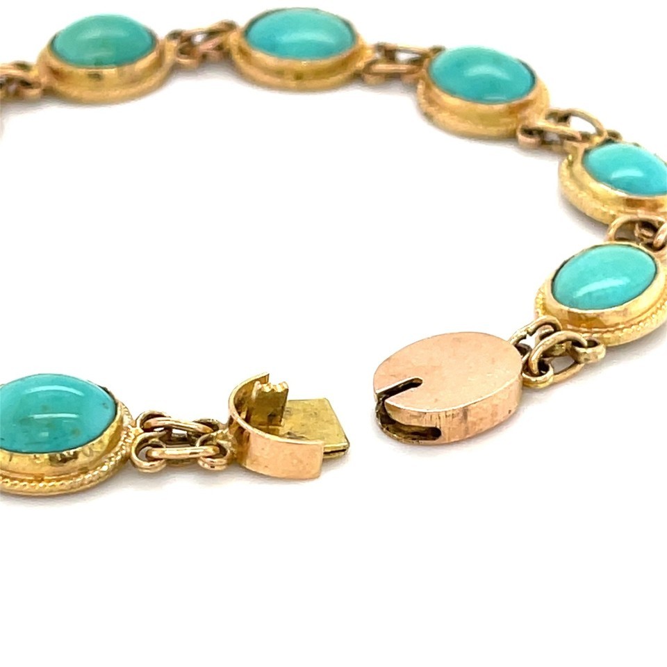 10k Gold, Oval Shaped Turquoise Cabochon Bracelet 7" 11.00 grams