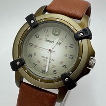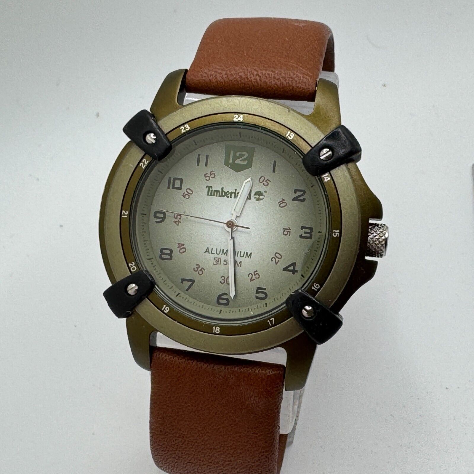 VTG Timberland Quartz Watch 12973G Men Green Aluminum Leather Analog New Battery