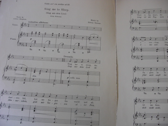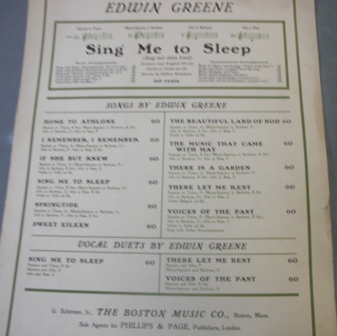 1902 Antique Music in English -- Tenor or Soprano Key in E-Flat. "Sing me to Sleep, the shadows fall, Let me forget the world and all, Tired is my heart the day is long -- Love I am Lonely, the years are so long.... A sad song....