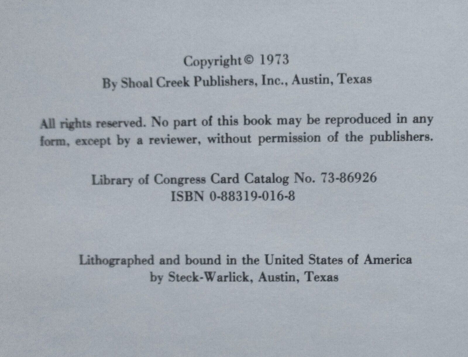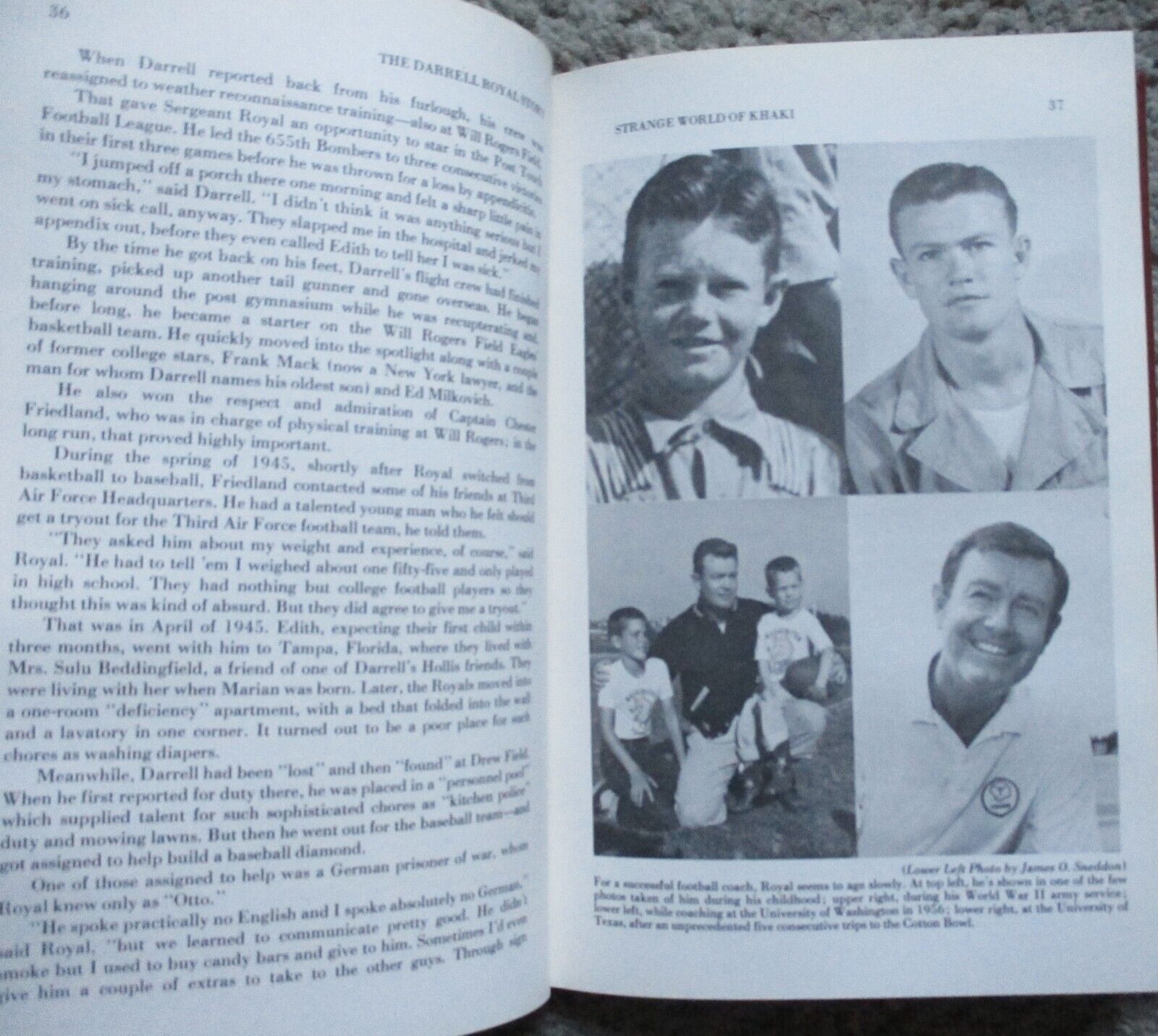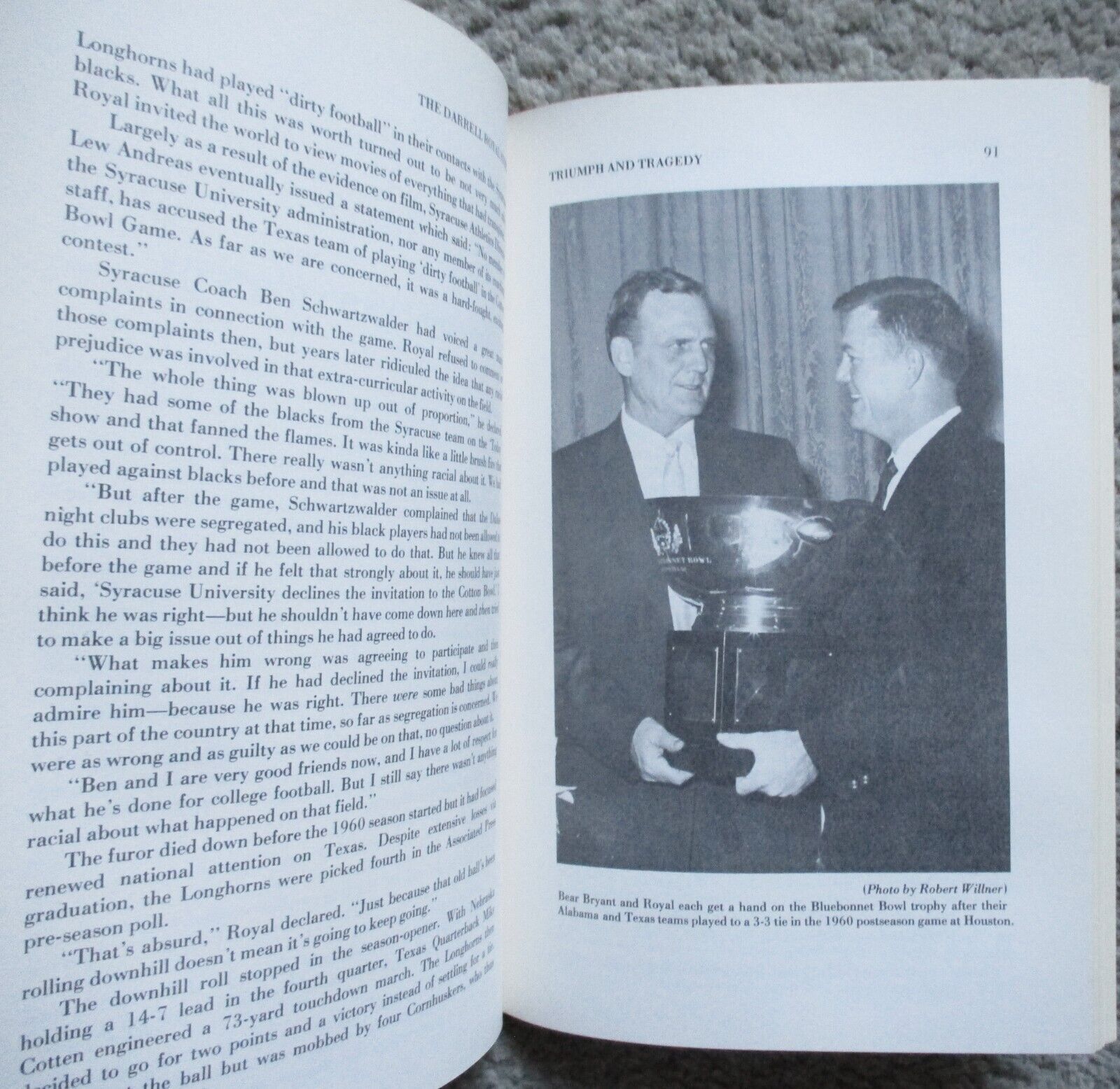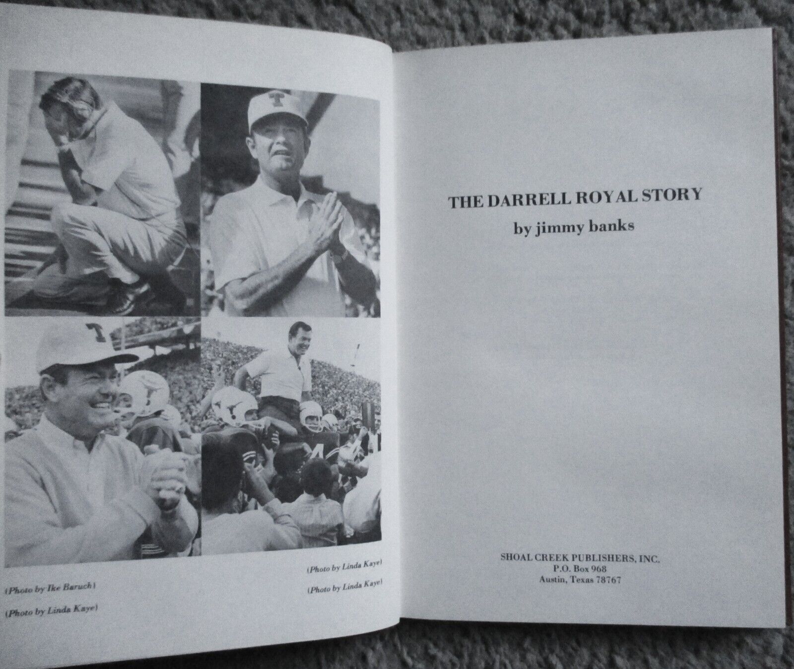 6.25" x 9.25", 178 page hardcover with dustjacket titled THE DARRELL ROYAL STORY by Jimmy Banks/ Shoal Creek Publishers, Inc., ISBN # 0-88319-016-8, First Edition (unstated), Copyright 1973/ This is the story of Darrell Royal's fascinating and spectacular climb to being the most successful coach in the Southwest conference.
