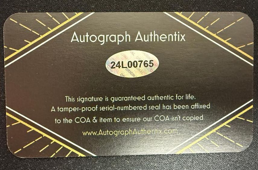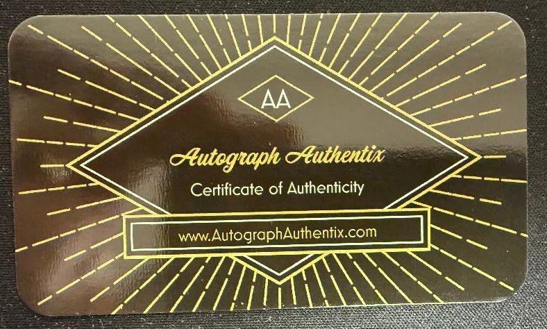 A fantastic piece hand-signed by this star. It comes with a lifetime guarantee of authenticity COA. All of our items are guaranteed authentic for life and are backed by our 20+ years in the autograph business. All items are hand-signed; we never sell copies or reproductions of any kind.