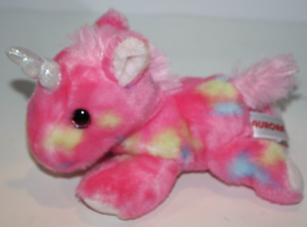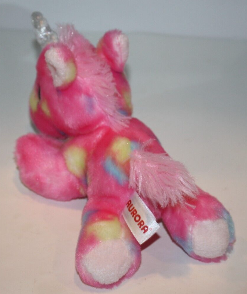 Aurora World Plush Pink Unicorn 8" Yellow Blue Spot Silver Horn Small Stuffed