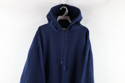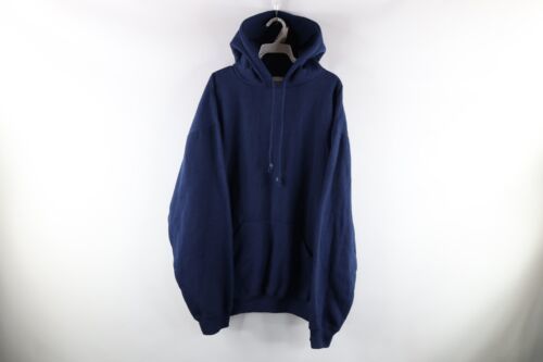 NOS Vtg 90s Streetwear Mens 2XL Blank Heavyweight Hoodie Sweatshirt Navy Blue