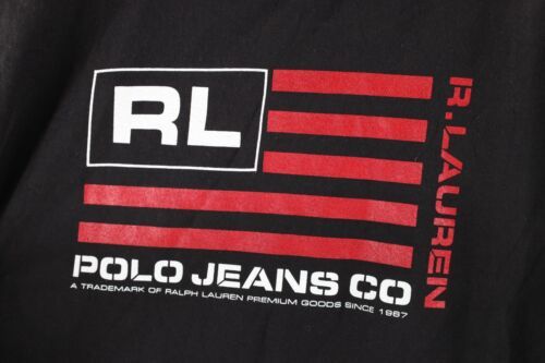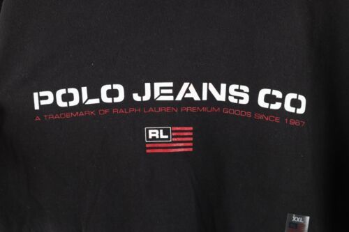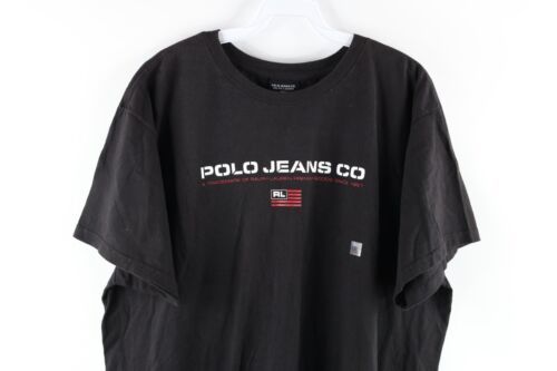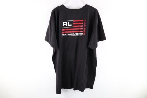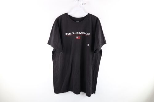 NOS Vintage 90s Ralph Lauren Mens 2XL Spell Out Flag Center Logo T-Shirt Black