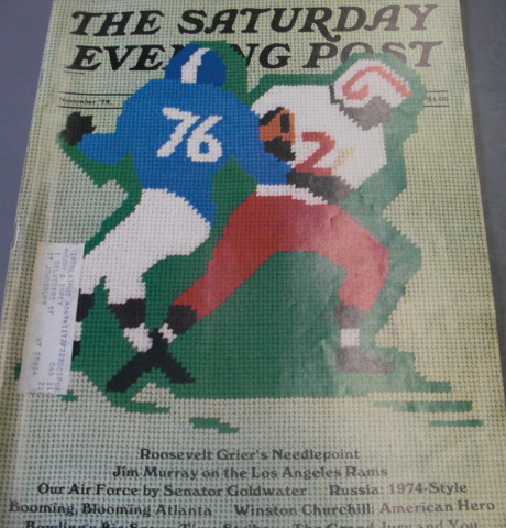 The Saturday Evening Post, November 1974. In Like new condition. Titles included are Roosevelt Grierโs Needlepoint, Jim Murray on the Los Angeles Rams, Our Air force by Senator Goldwater, Russia:1974 Style, Booming, Blooming Atlanta, Winston Churchill: American hero, Bowlingโs Big Spare-Time Strike and The Grand Jury aThe Saturday Evening Post is a renowned publication with a lengthy (and continuing) history. Samuel Atkinson and Charles Alexander first published the โPostโ as a newspaper in Philadelphia. Their paper launched from the same hand-operated printing press that previously produced Benjamin Franklinโs famed Pennsylvania Gazette. The Post, now classified as a magazine, remains in publication almost 200 years after its introduction. However, it reached the height of its popularity during the 1920s and 1930s. During this peak, The Saturday Evening Post served America as its most widely read magazinend You.
