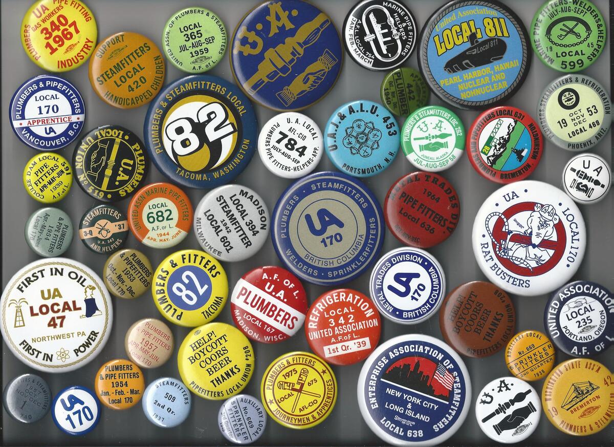 UA Union United ASSN Button Pin Pinback Plumbers Steamfitters PIPEFITTERS Lot