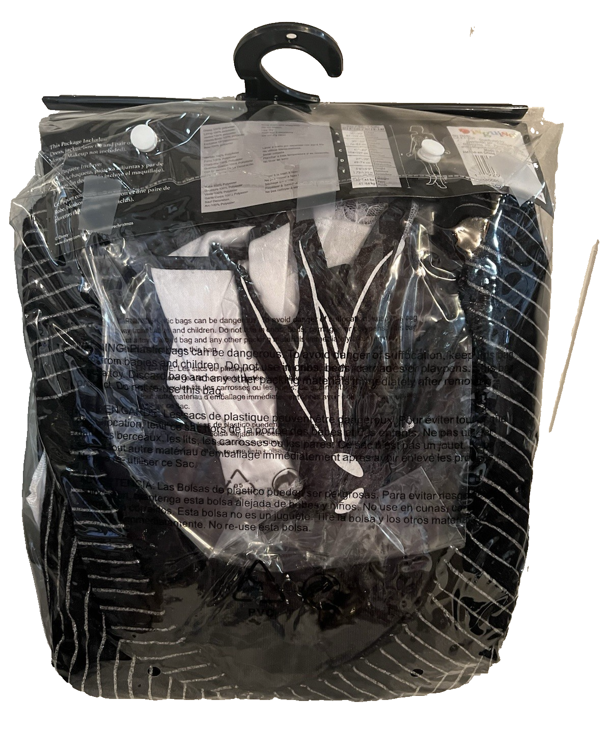 The Jack Skellington Nightmare Before Christmas Halloween Costume in Adult Large is perfect for fans of the iconic Halloween-themed movie. This complete outfit in black polyester material features a detailed design inspired by the beloved character, making it a must-have for anyone looking to channel their inner Skellington this Halloween. The unisex size L offers a comfortable and stylish fit for Halloween festivities or costume parties.