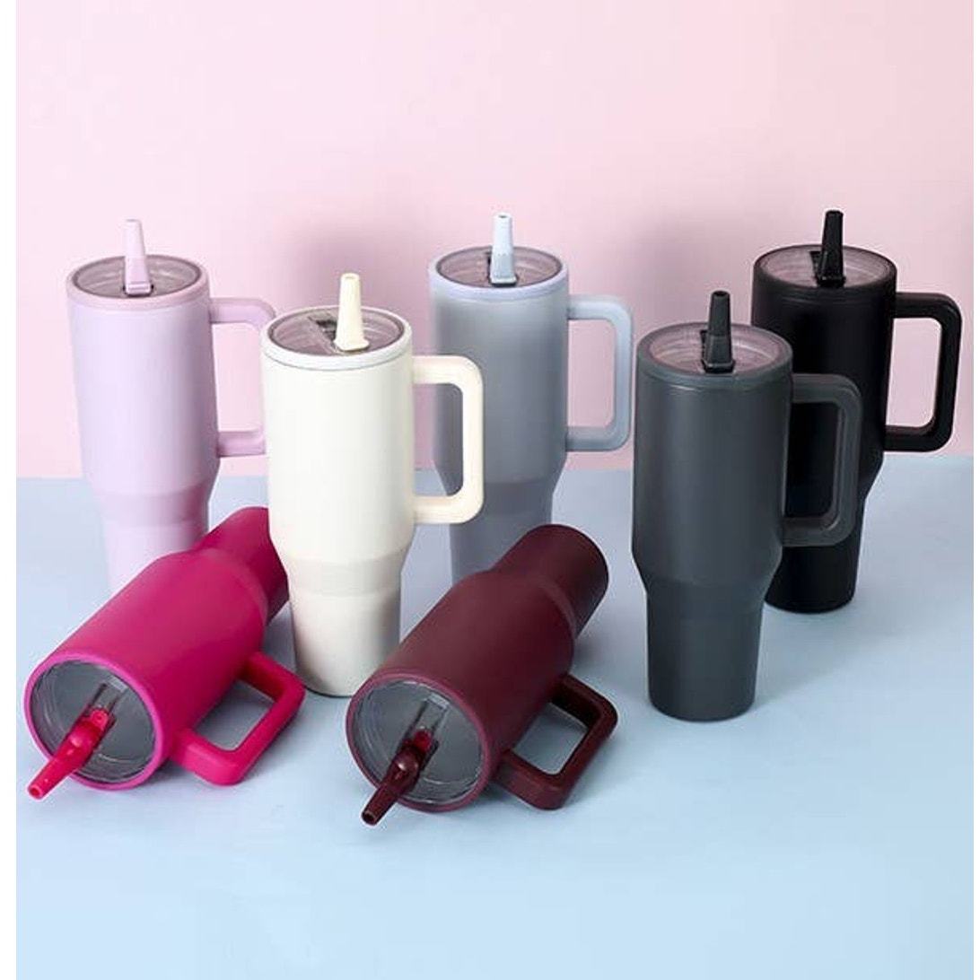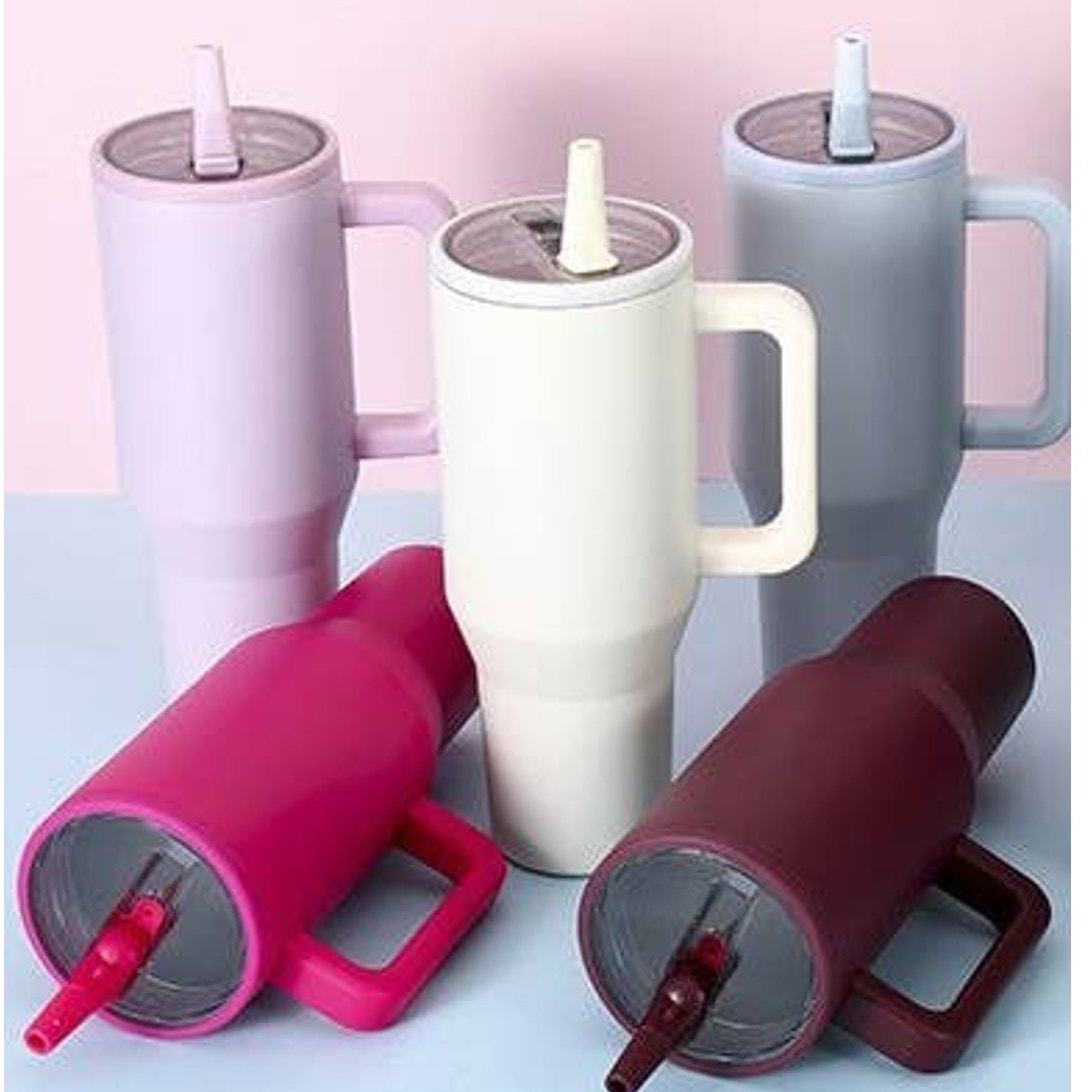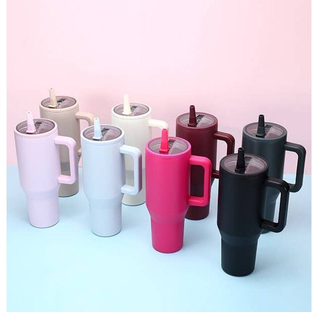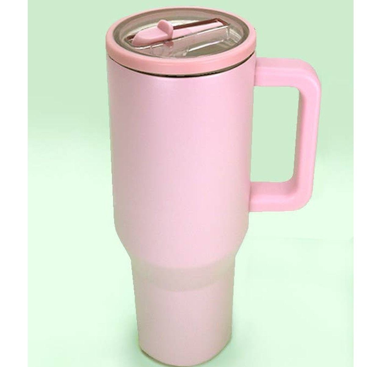 40 oz Pink Solid Color Insulated Stainless Steel Tumbler with Handle