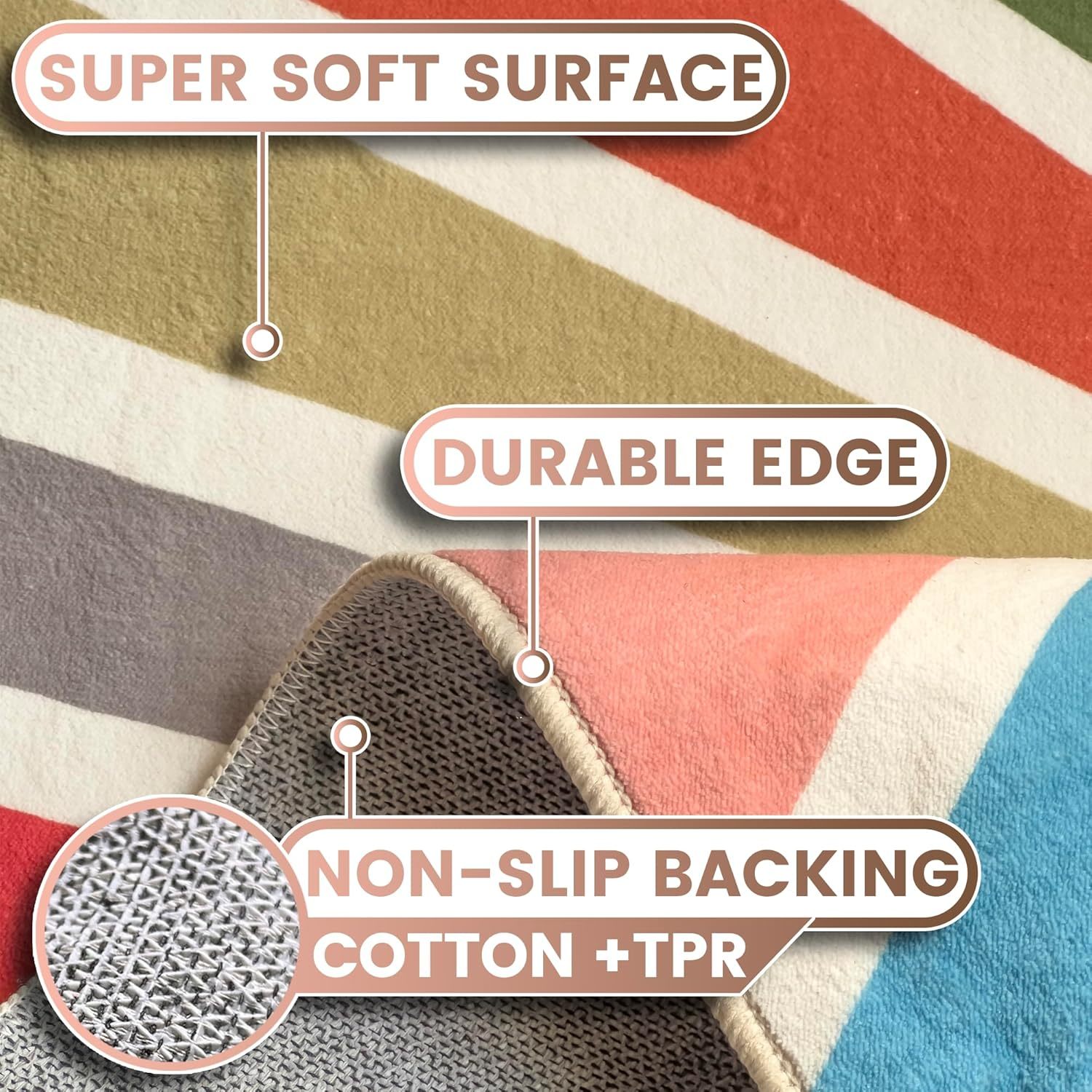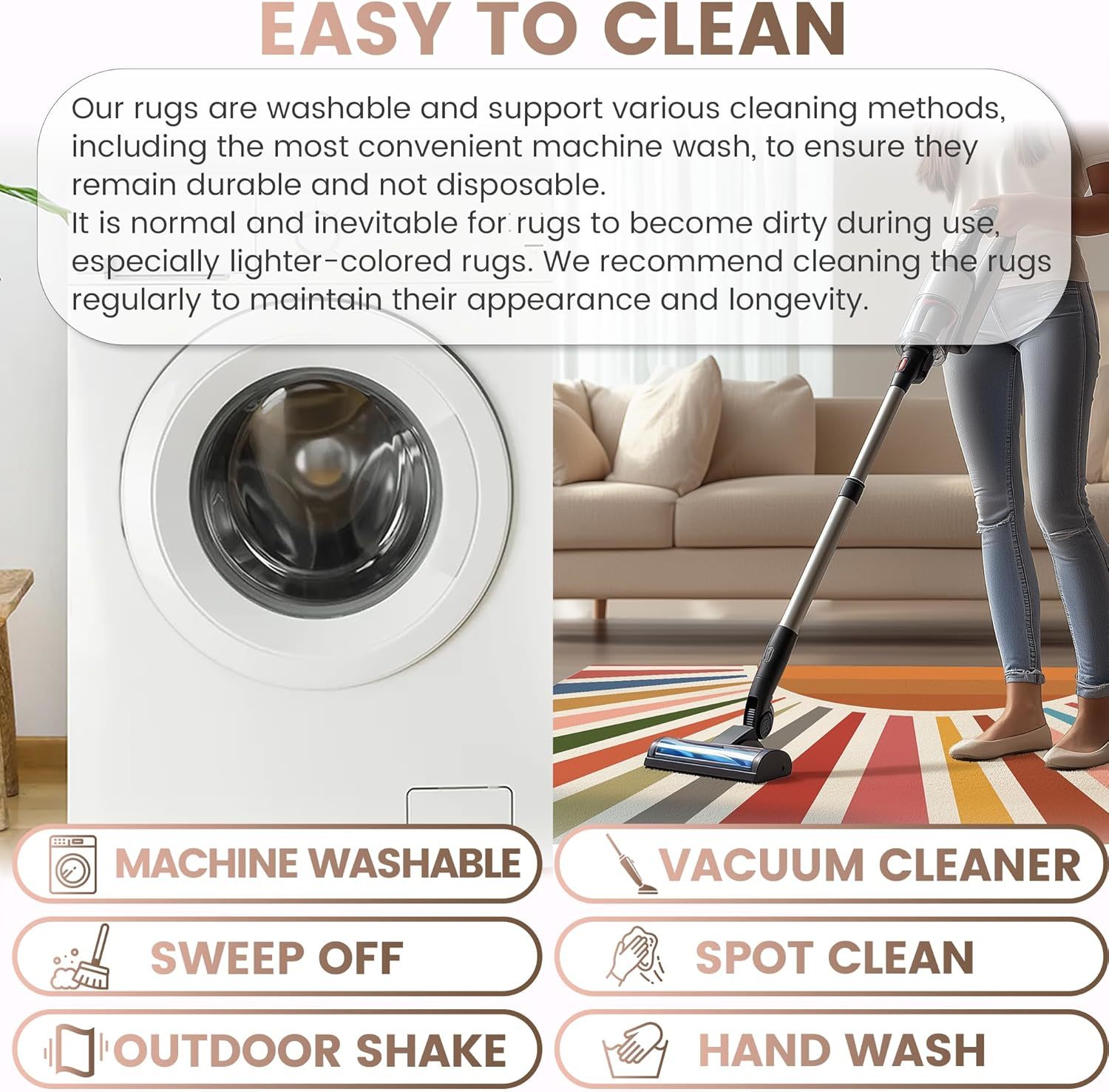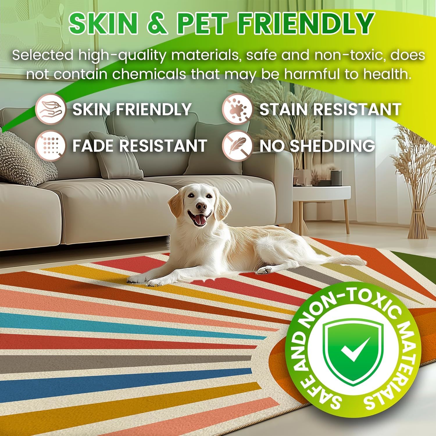 Washable 5X7 Sun Area Rug For Living Room, Rainbow Sun Modern Boho Large Area