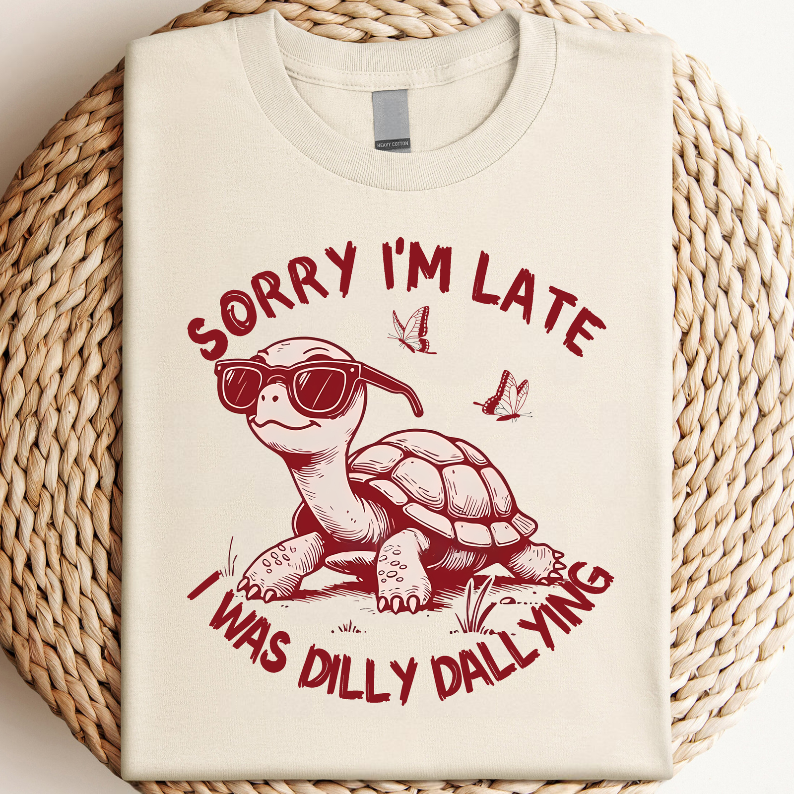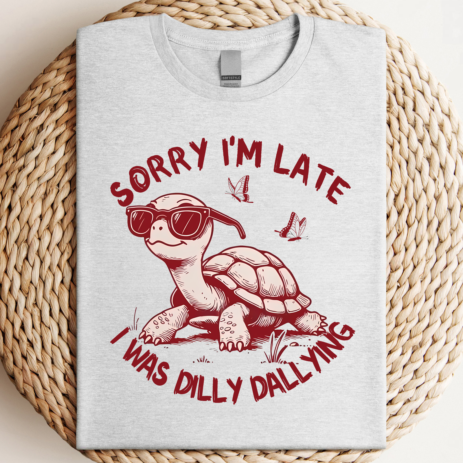 Sorry I'm Late I Was Dilly Dallying PNG, Funny Turtle Shirt PNG, Vintage Animal Sayings PNG, Humorous saying PNG Design Sublimation Digital File, Digital Download, Instant Download, Sublimation Design PNG, Shirt PNG, Shirt design PNG, Shirt Print PNG, T-Shirt Design PNG, Graphic PNG, Sublimation PNG
