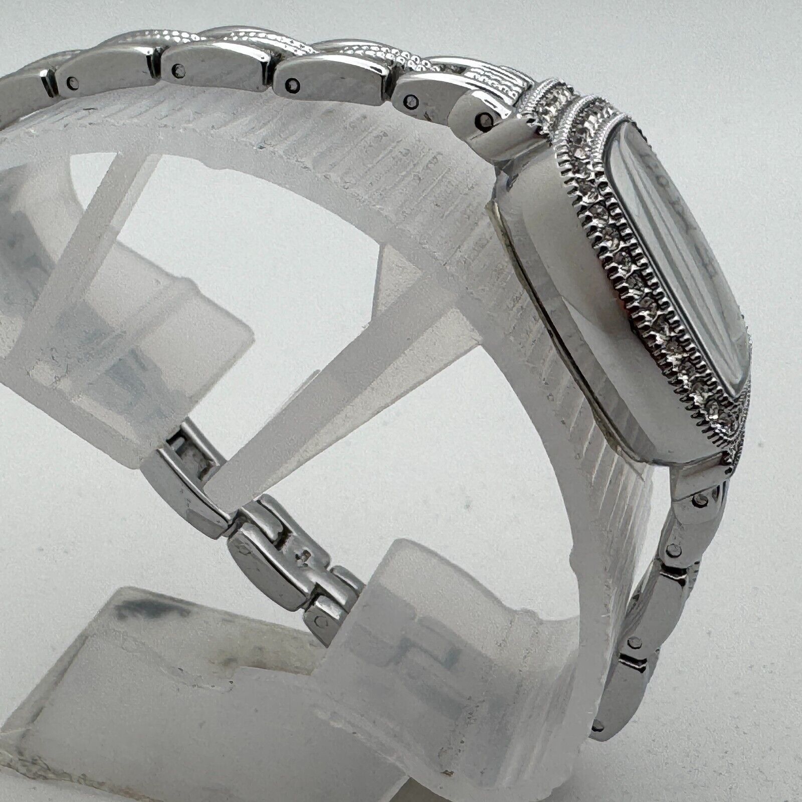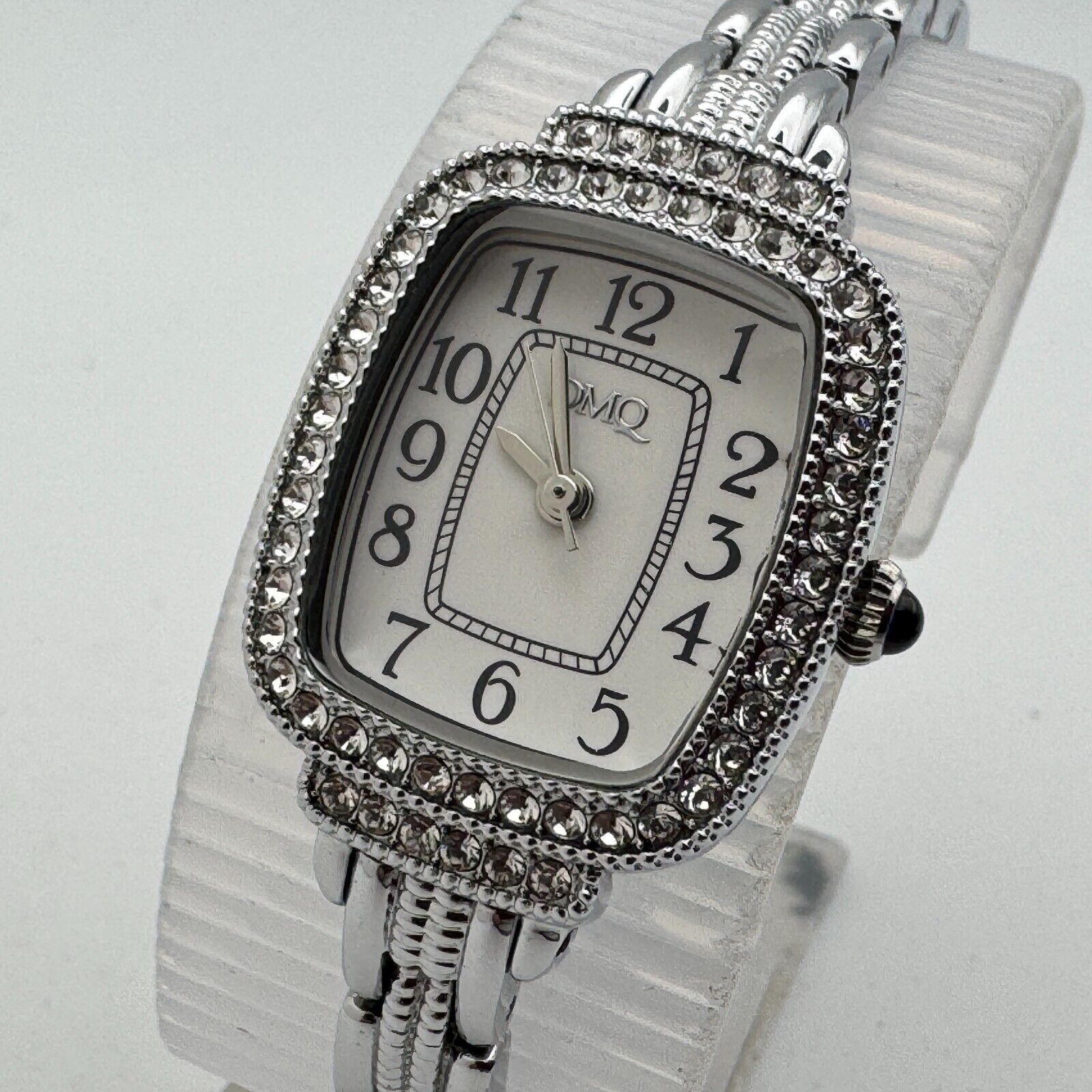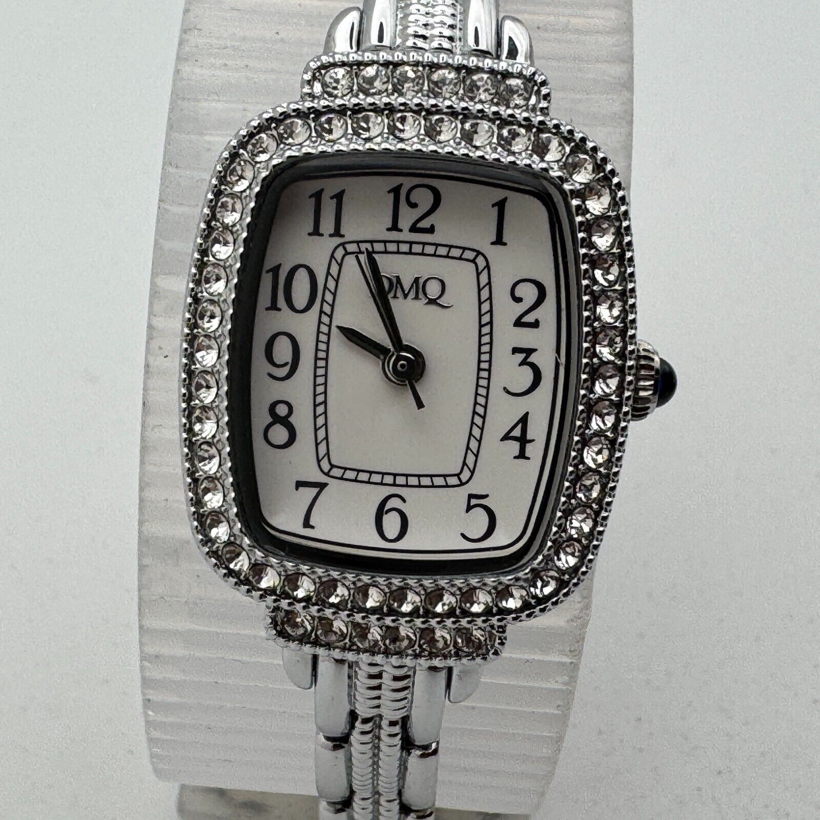 Unused DMQ Quartz Watch Women 30m Silver White CZ Stone Analog New Battery 6"