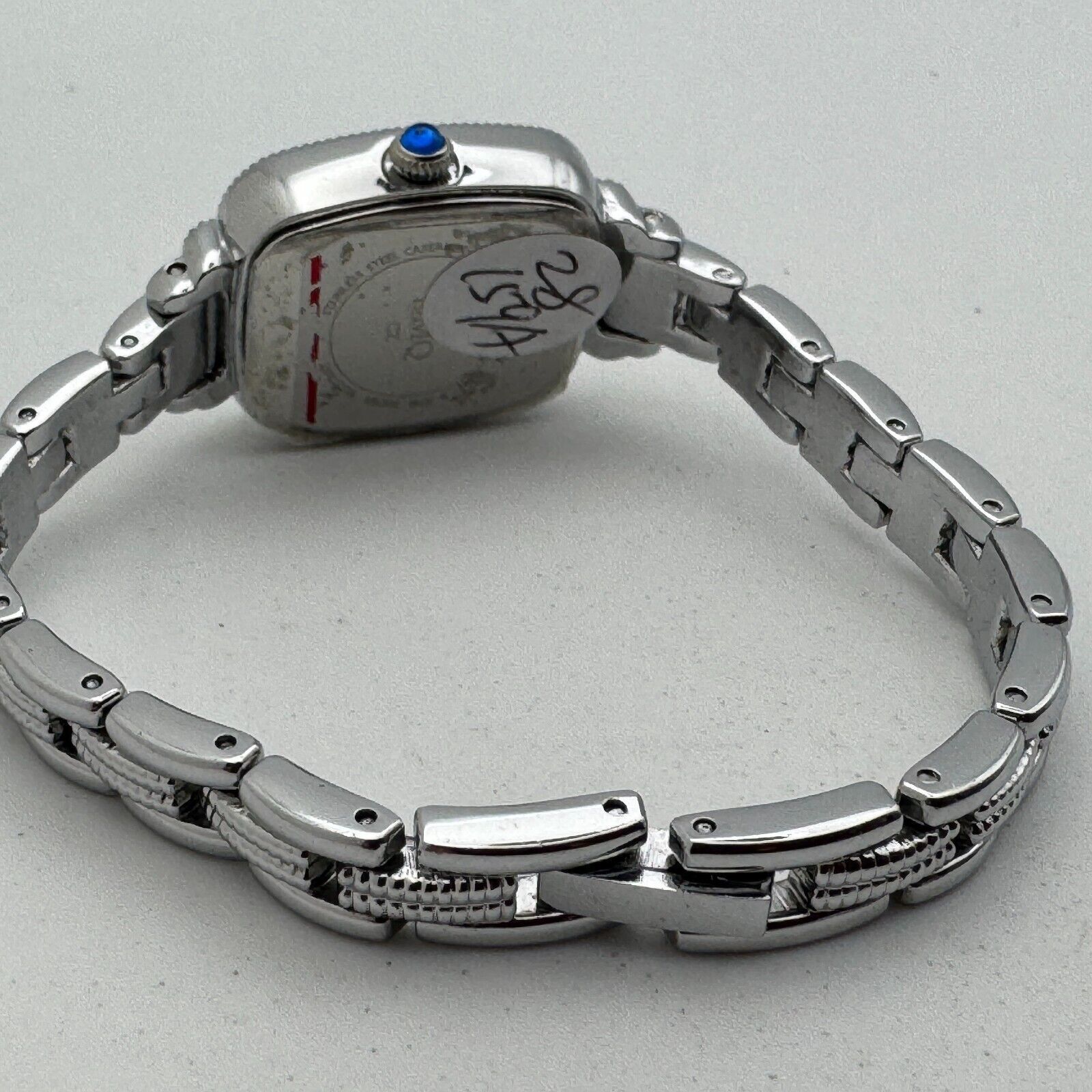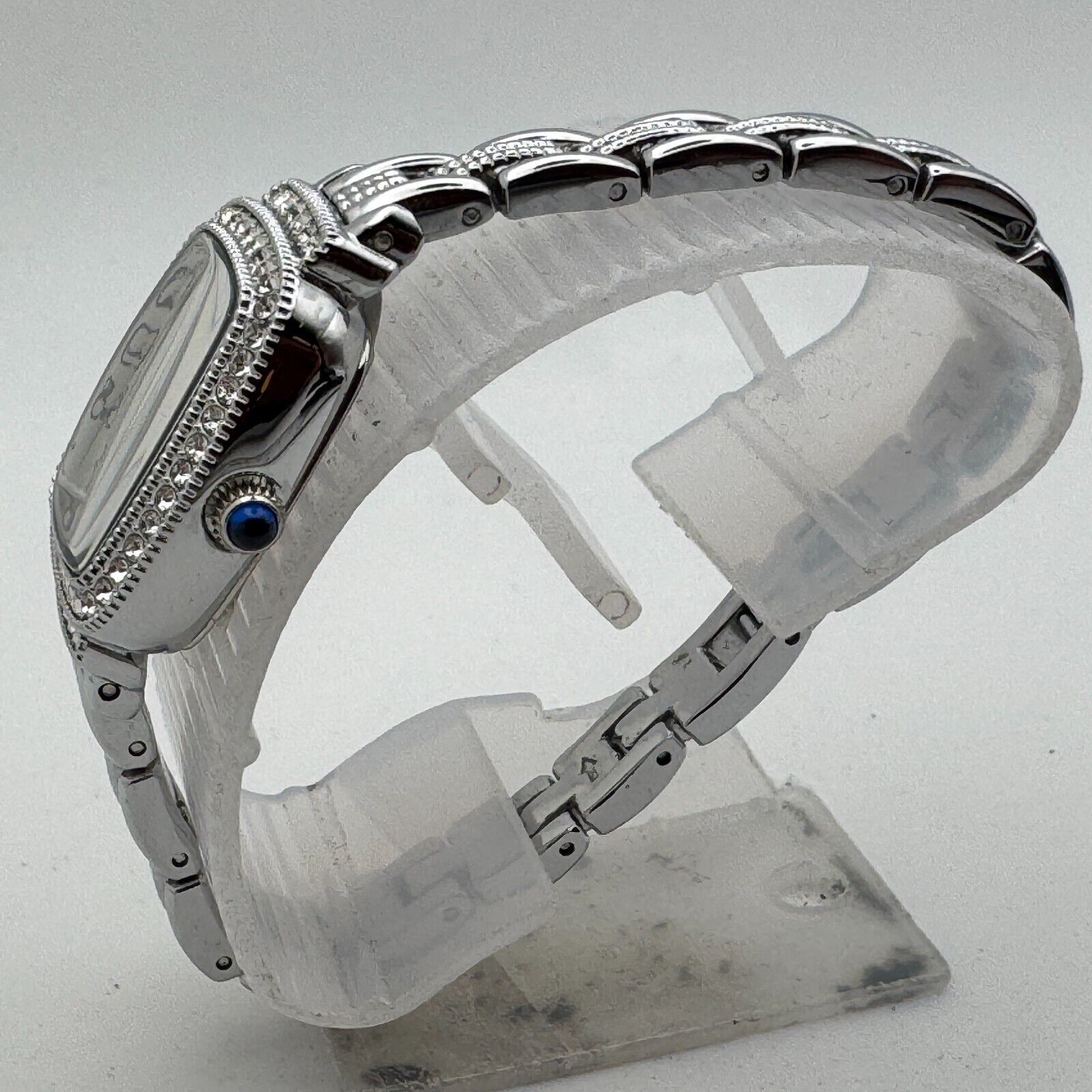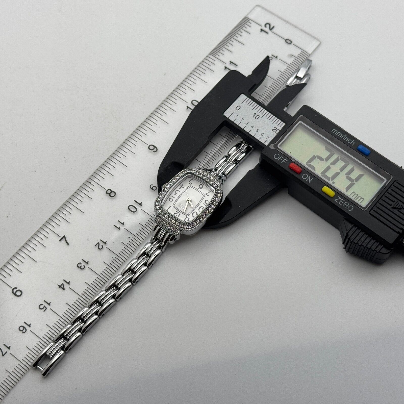 Unused DMQ Quartz Watch Women 30m Silver White CZ Stone Analog New Battery 6"