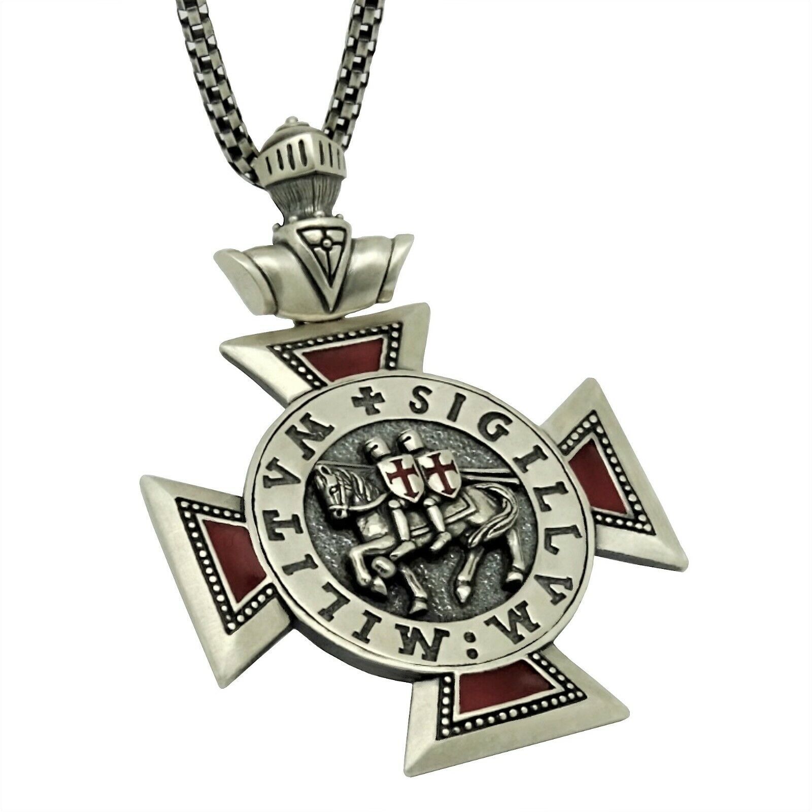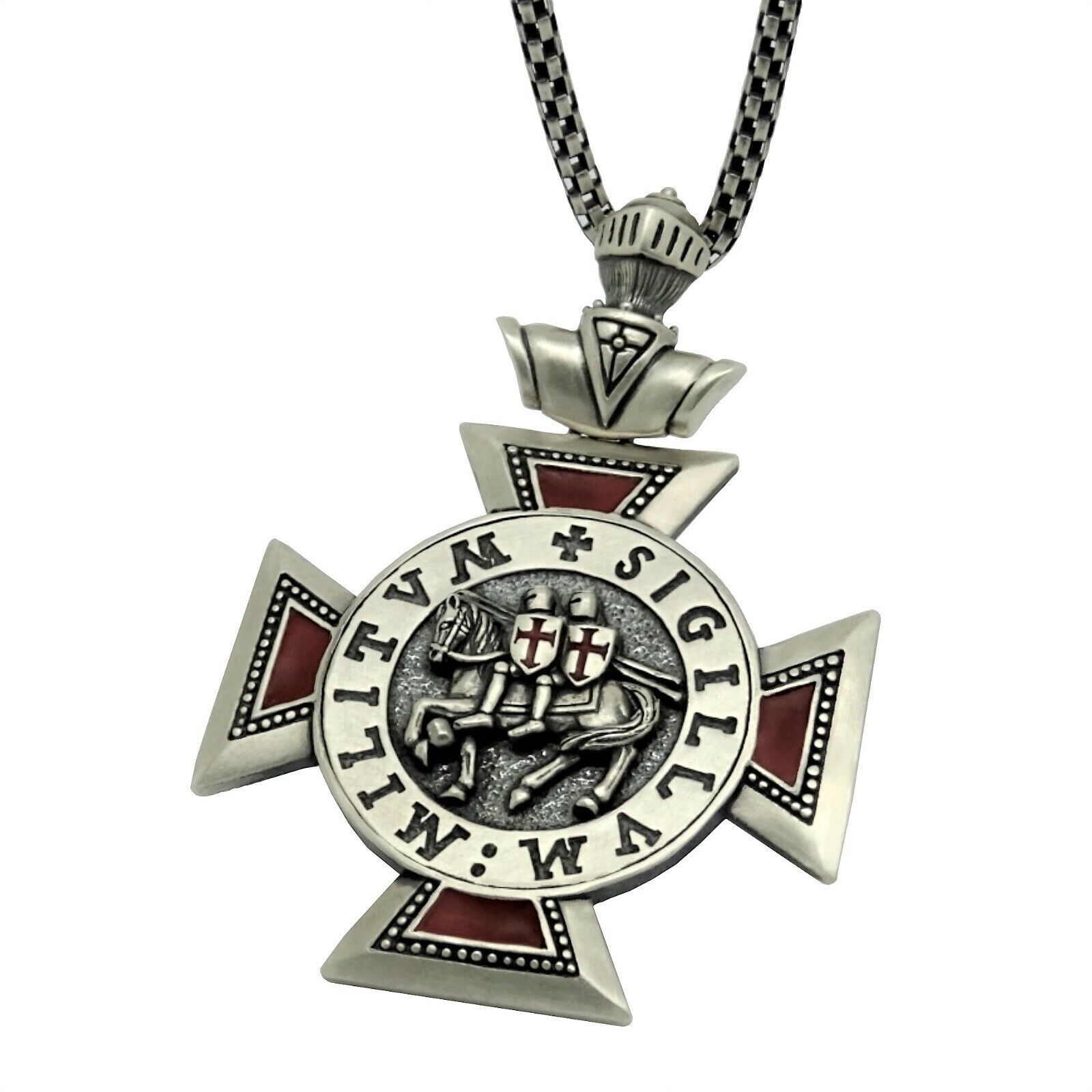 Knights Templar Silver Cross Pendant with Chain Handcrafted Soldiers of Christ