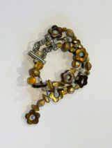 Vintage Style Multi-Strand Beaded Bracelet with Flower Pendants Toggle Closure