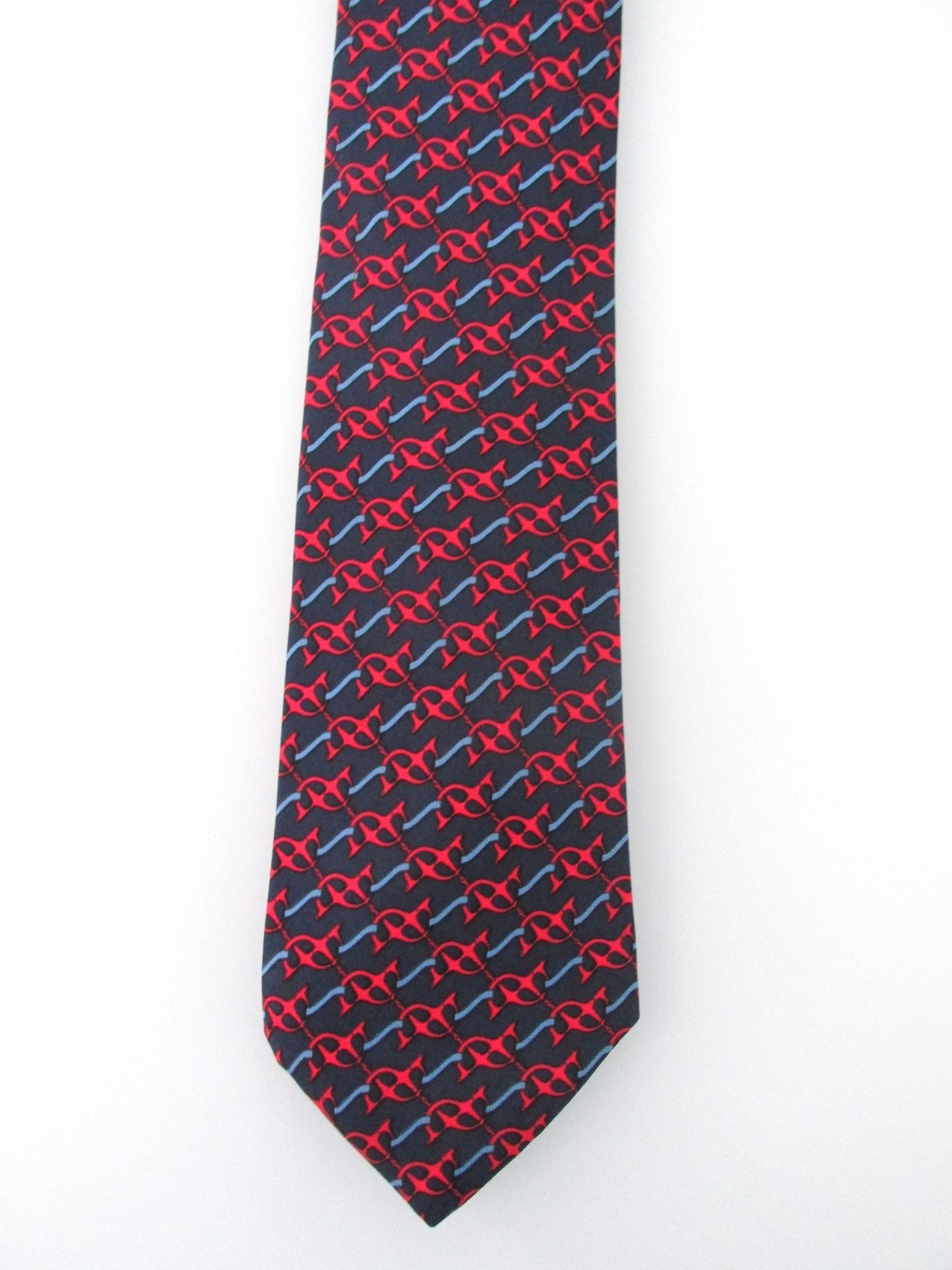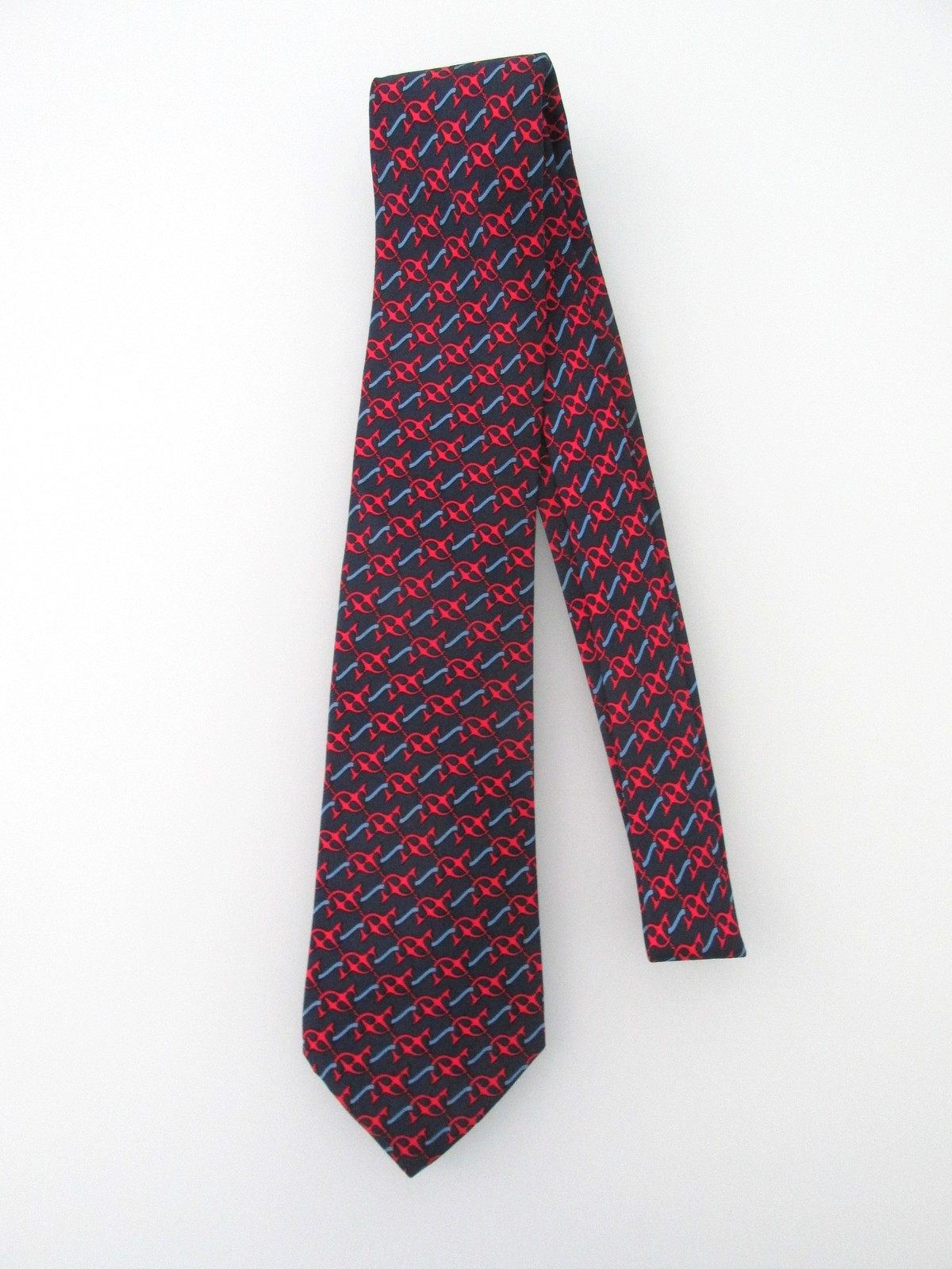 Description: Up for sale is a Hermes vintage men's silk tie. The print # is 7007TA. Hermes ties are made in France of 100% silk. All Hermes ties are handmade and finished. Dimensions are approximately 55" long x 3 1/8" wide. It Has a bright red light blue abstract pattern on a navy blue background. This tie is in perfect condition.