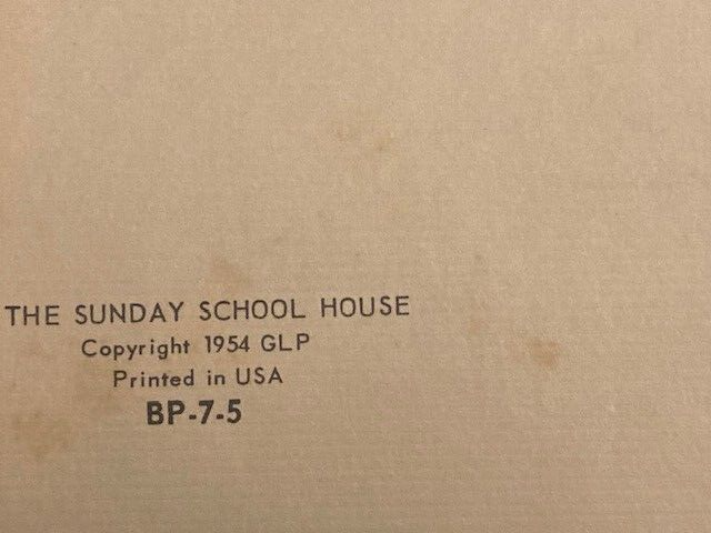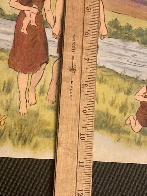 VINTAGE 1954 LITHO PRINT - THE SUNDAY SCHOOL HOUSE - Adam, Eve, Cain and Abel Overall good. Some small areas of discoloration.