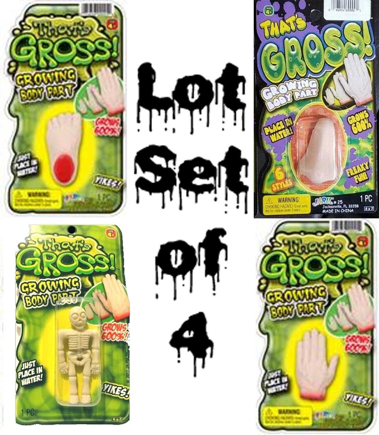 4-Piece SET - Walking Dead Zombie Serial Killer Trophy Dexter - MAGIC GROW GROWING BLOODY SEVERED Human HAND - FOOT - NOSE - SKELETON