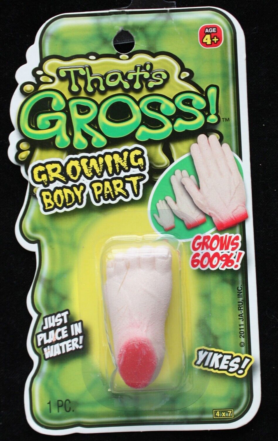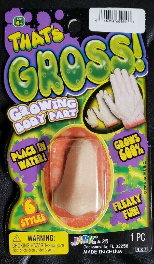 Each comes brand new/factory sealed for resale or as gift. Get a bunch as these make great gifts to hand out, table scatters and mad scientist laboratory props. This is a fun product that allows anyone to ''grow'' a body part. - When you remove the severed body part from the package, it measures about 1.5 to 2.25-inch long, depending on style.