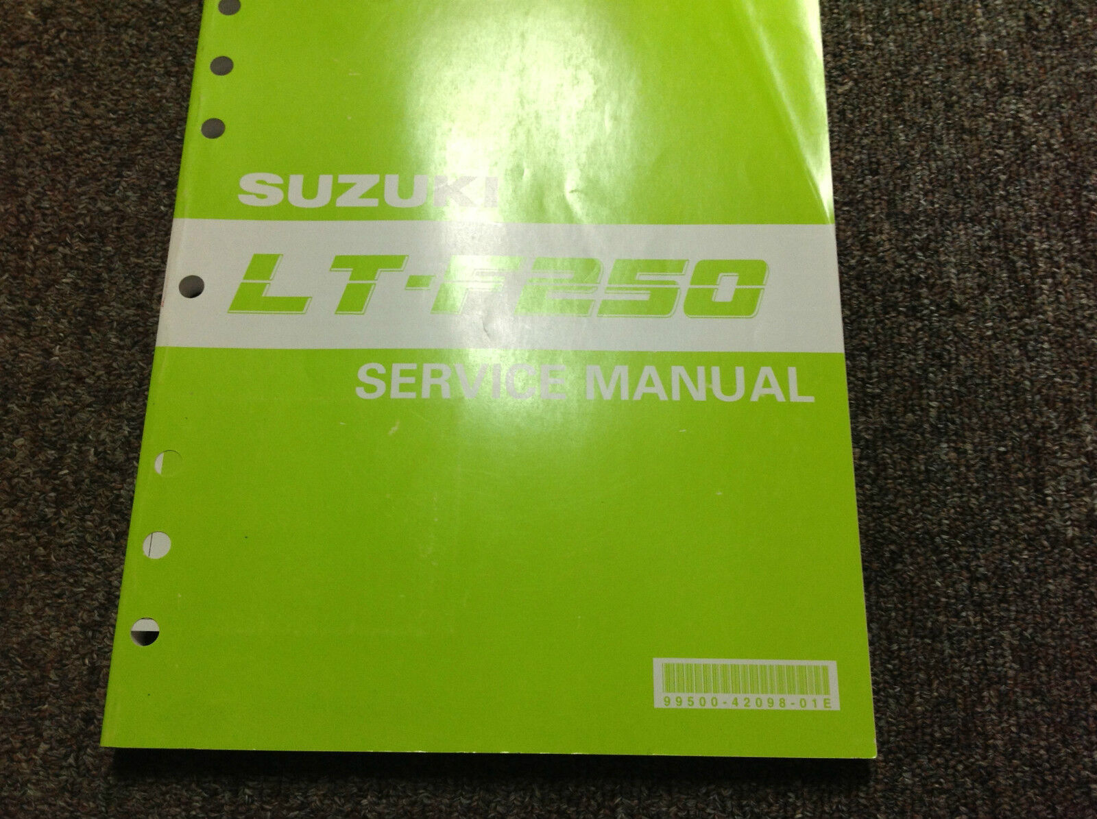 Manuel de service d'usine Suzuki LT-F250, numero de piece 99500-42098-01E, s'adapte a des annees de modele 1989-1990-1991, cette liste est pour un manuel.