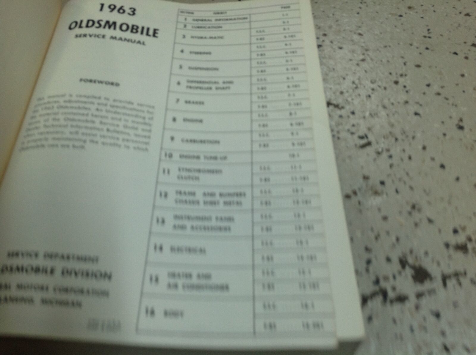 NOUVELLE REIMPRESSION AUTORISEE PAR L'USINE 1963 Factory Oldsmobile All Series Manuel d'entretien