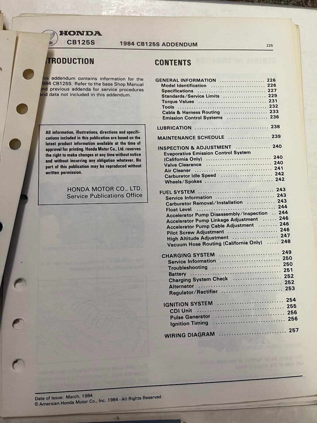 1982 1983 1984 Honda CB100 CB125 SL100 TL125 Service Shop Réparation Manuel Set