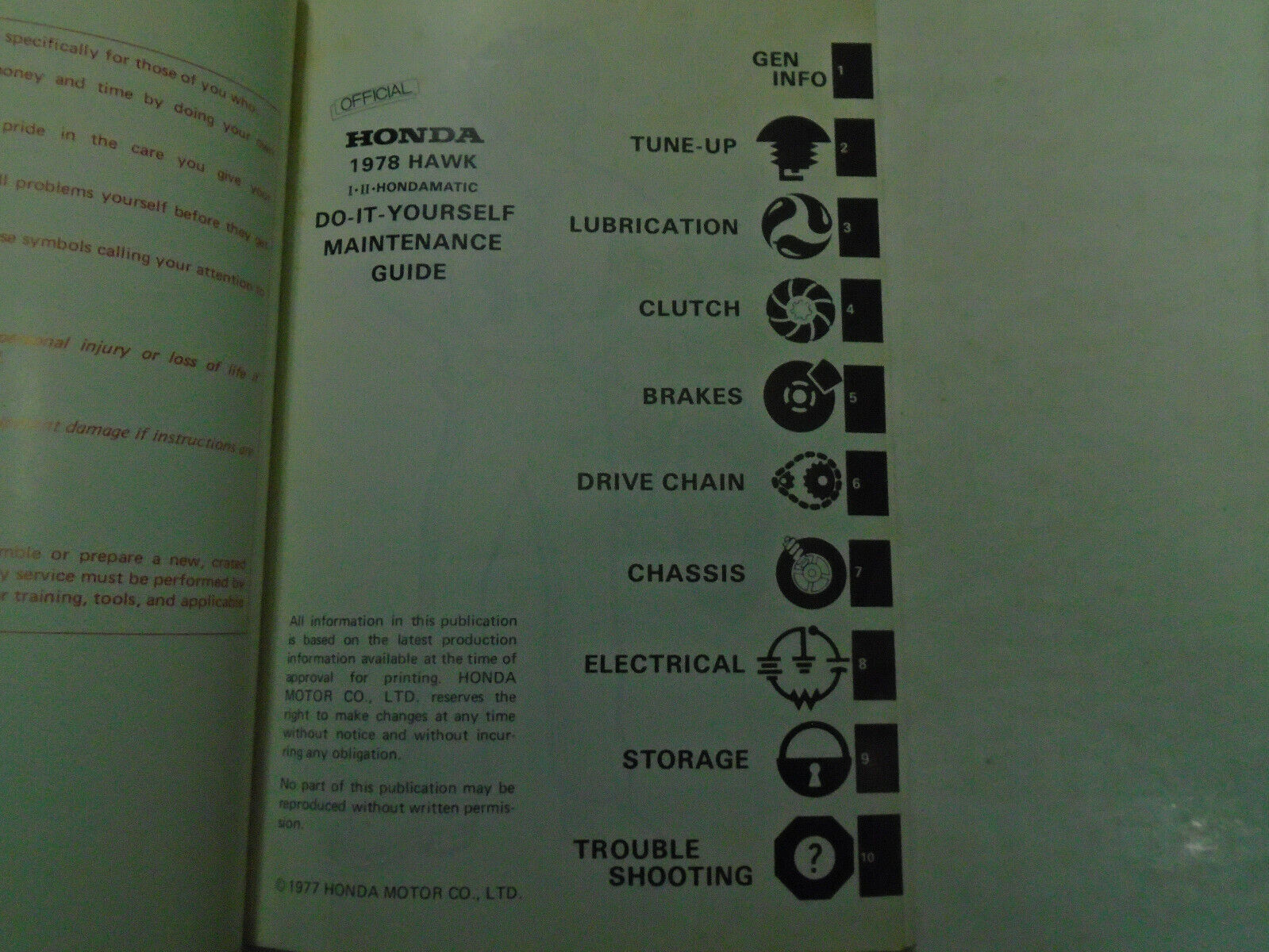 1978 Honda Hawk I II Hondamatic Do It Yourself Maintenance Guide Manuel Worn