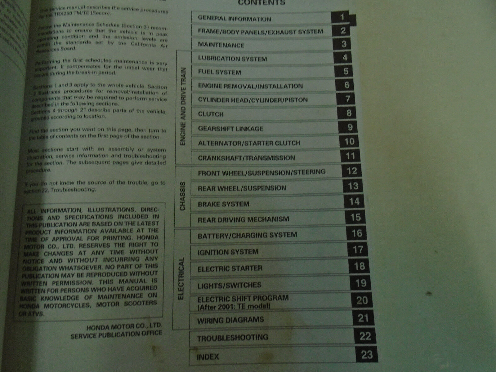 1997-2003 Honda TRX250TE / TM Recon Fourtrax Manuel de service