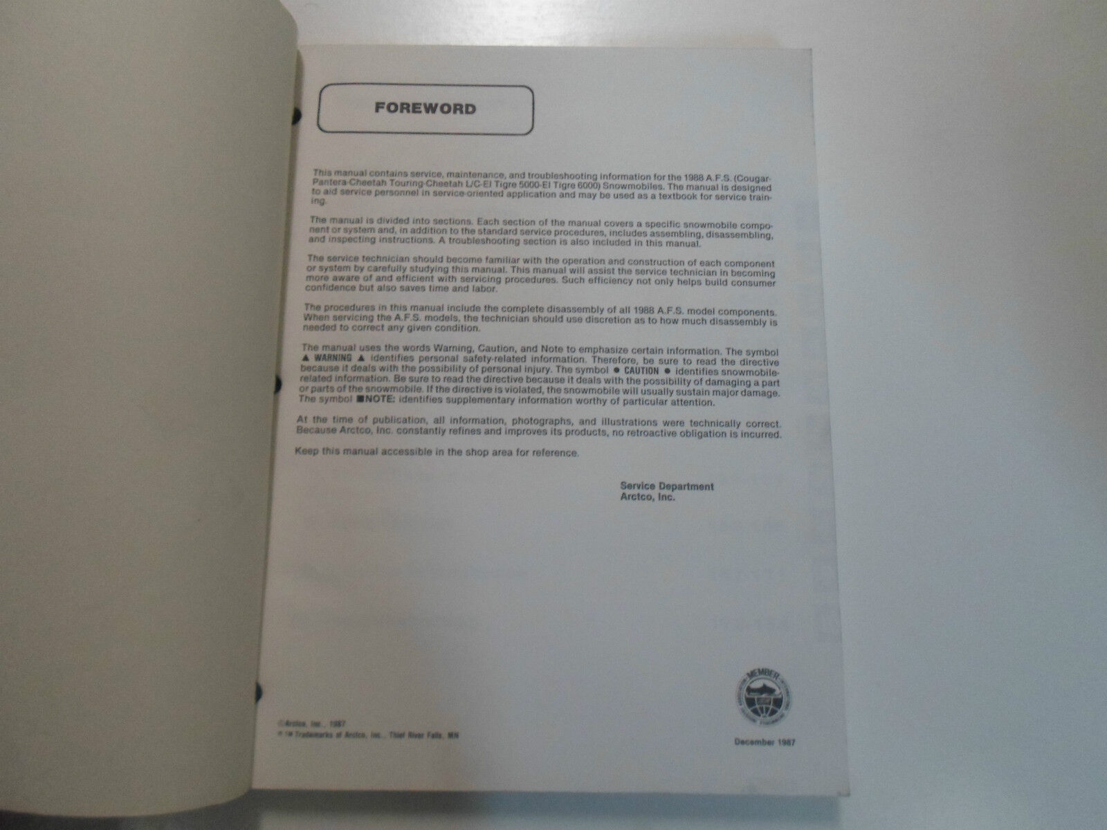 1988 Arctic Cat El Tigre Pantera Cougar Guépard Service Atelier Manuel 2254-453