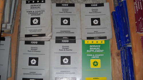 Factory 1999 Chrysler Town and Country / Dodge Caravan / Plymouth Voyager Service Manual, Powertrain Diagnostics Procedures Manual / Body Diagnostics Procedures Manual / Chassis Diagnostic Procedures Manual / Transmission Diagnostic Procedures Manual, and the Service Manual supplement.