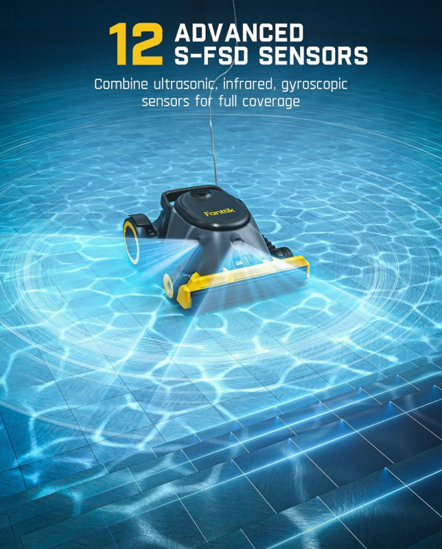 AquaPilot Smart Navigation: With dual ultrasonic and high-precision sensors, AquaPilot provides real-time pool coverage and accurately tracks the robot's position. Its proprietary navigation algorithm optimizes the cleaning path, efficiently covering the floor, walls, and waterline for thorough cleaning
