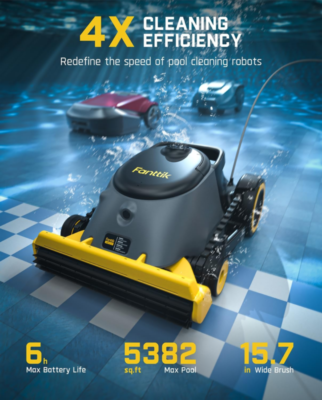 Cordless Robotic APP Remote Control, Clean Floor, Walls, and Waterline, up to 5382 Sq.Ft , 6-Hour Working Time, 4X Efficiency,