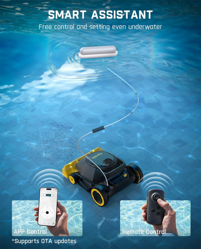 Smart Assistant: No need to remove the robot from the water. You can easily set cleaning modes and control the robot in real-time via the app. Additionally, the handheld remote allows you to adjust the robot's cleaning path or set specific cleaning targets, meeting diverse needs and providing an intelligent cleaning experience