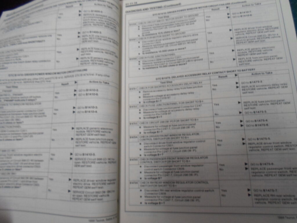 1998 MANUALE DI SERVIZIO DI FABLE Ford TAURUS MERCURY E MANUALE DI RISOLUZIONE ELETTRICA E SCOUO.