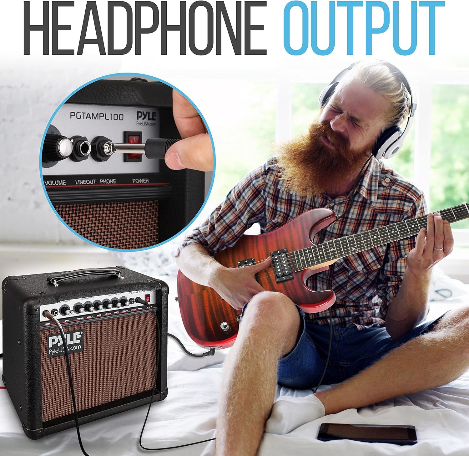 GREAT ALL AROUND GUITAR AMPLIFIER: Whether you want this electric guitar amplifier in the bedroom, studio, or small stage performances, it is ideal as it performs well all-around even when playing classical to rock music. Also utilizes a 1/4 jack EASY TO USE CONTROLS: Mini Guitar Amp has integrated Gain, Bass, Treble, Volume, and Chorus controls, and you have complete control with multiple adjustable dials, a built-in speaker, and a jack for headphones to allow silent practice in the bedroom CONVENIENTLY PORTABLE AMPLIFIER: Designed with a carry handle, you can easily carry Pyle?s amp for electric guitar to anywhere you?d like. This small guitar amp is also lightweight at 17 lbs and has maximum dimensions of 21.75? x 18? x 16.5? 8 OHM IMPEDANCE FOR CLEARER SOUND: This electric and acoustic guitar amp has an excellent crisp sound like no other. The small guitar amp is also amazing and has several ranges, all features are adjustable and customizable to your own taste HIGH QUALITY BUILD: This amplifier for electric guitar is built with premium solid wood that is coated with high-quality leather, ideal for reducing impact damage to the speaker. The portable guitar amp also has a Power On/Off Switch w/ LED Indicator