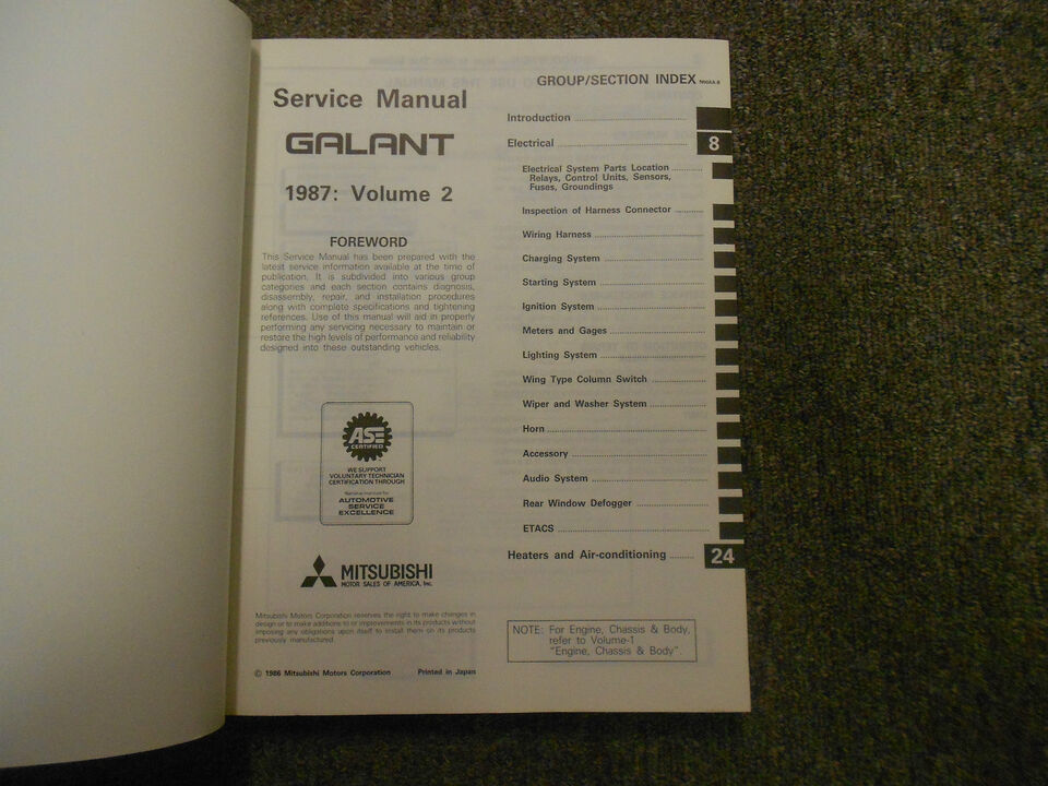 1987 Mitsubishi Galant Service Repair Workshop Manual Flight 2 Electric OEM- ...