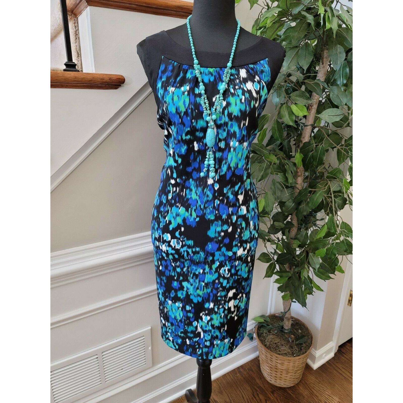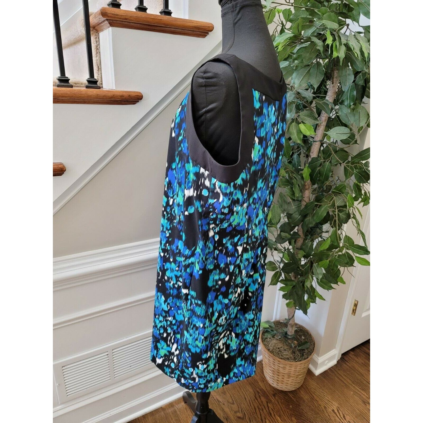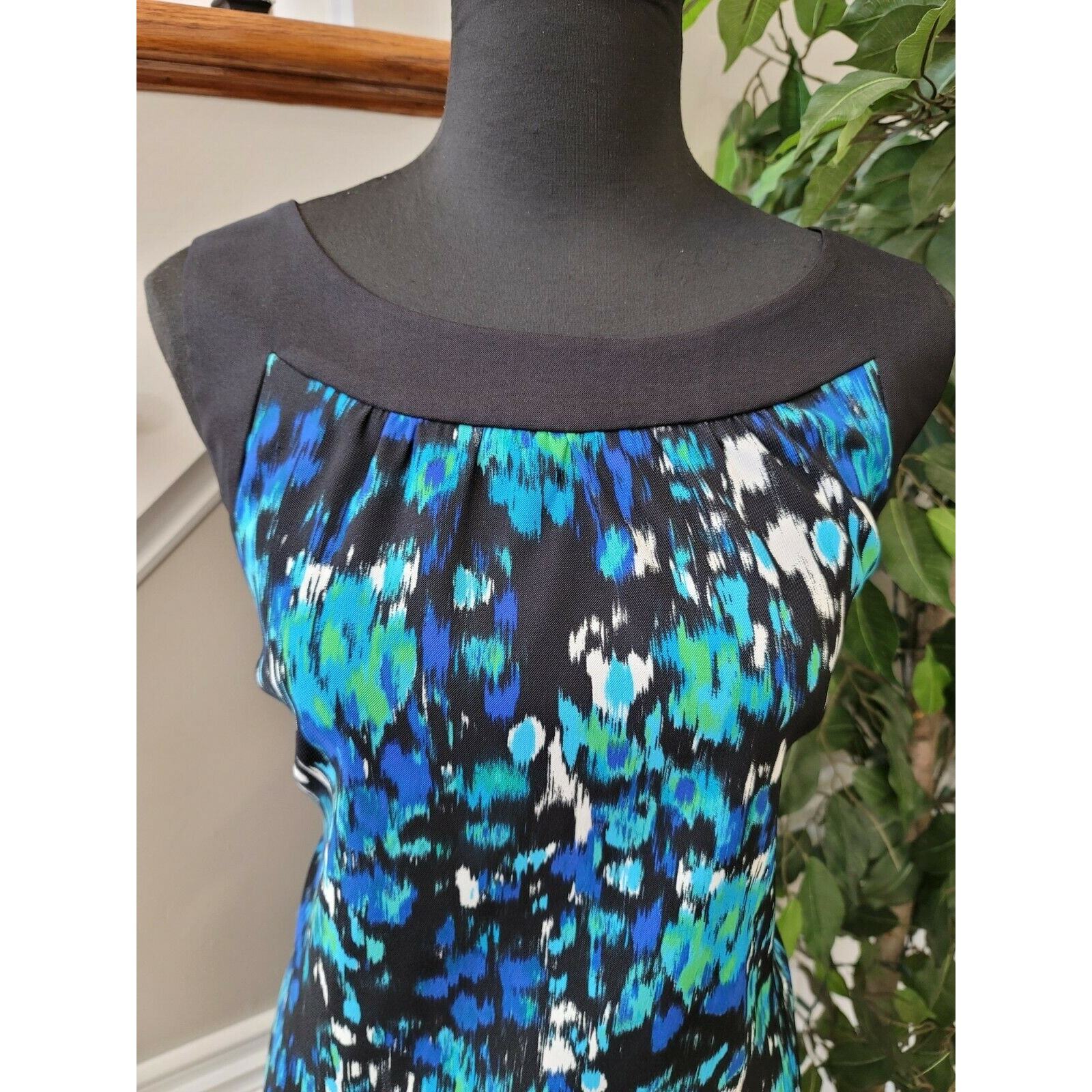 Ab Studio Women Multicolor Polyester Round Neck Sleeveless Knee Length Dress 16.