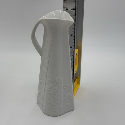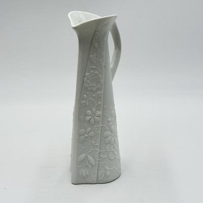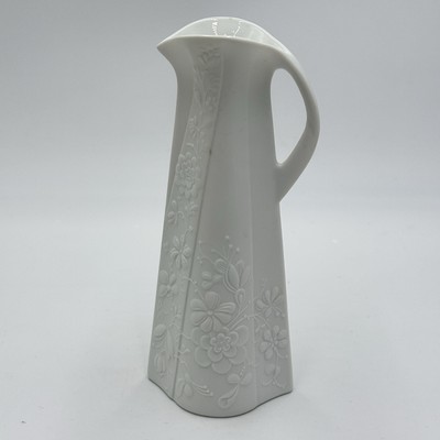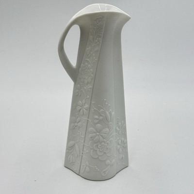 Kaiser Germany White Bisque Vase Embossed Floral Pitcher 8" By M.Fray Porcelain