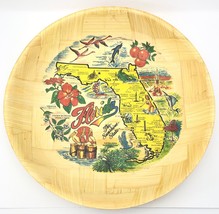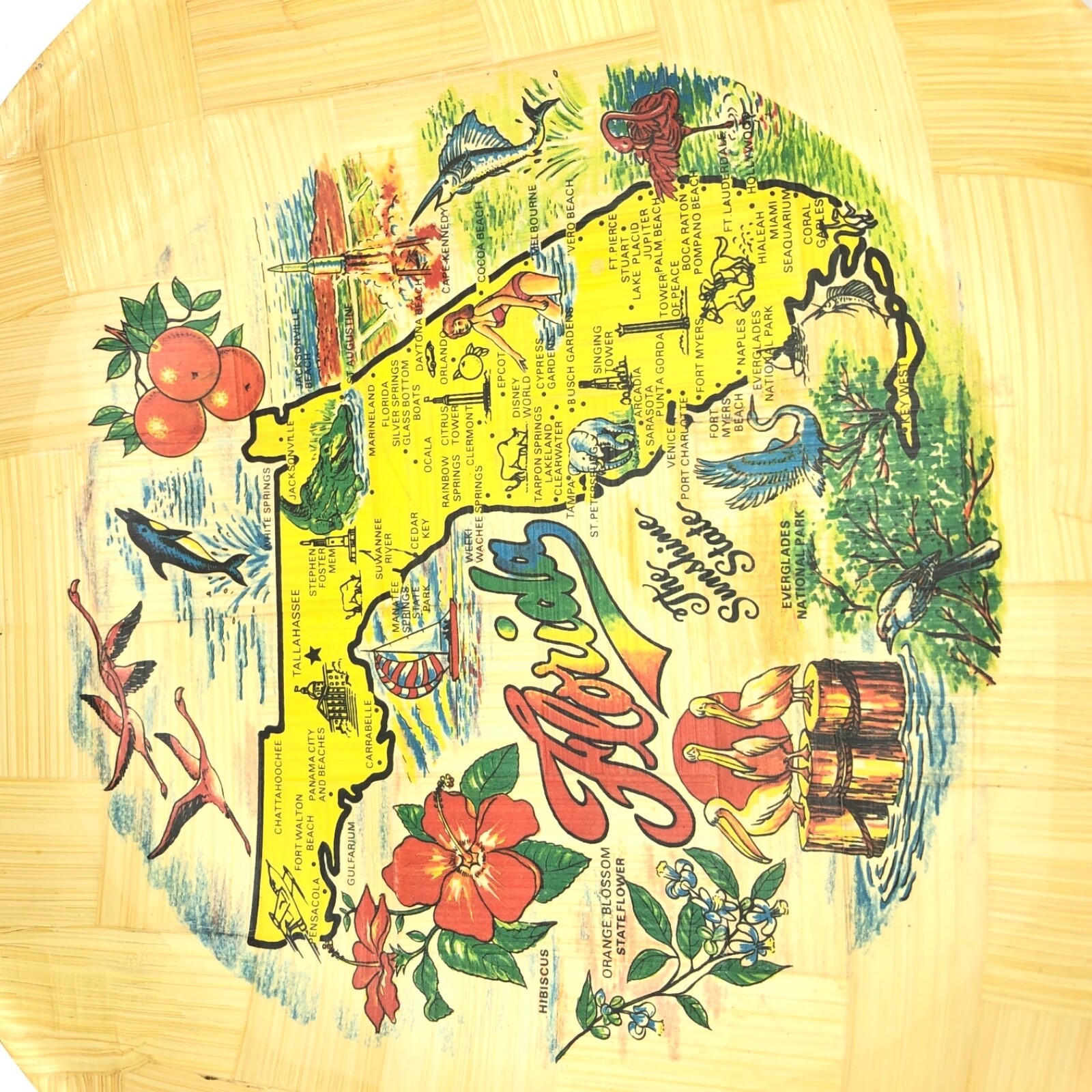 Vintage Florida Souvenir Bamboo Bowl Rainbow Full Color Illustrations
