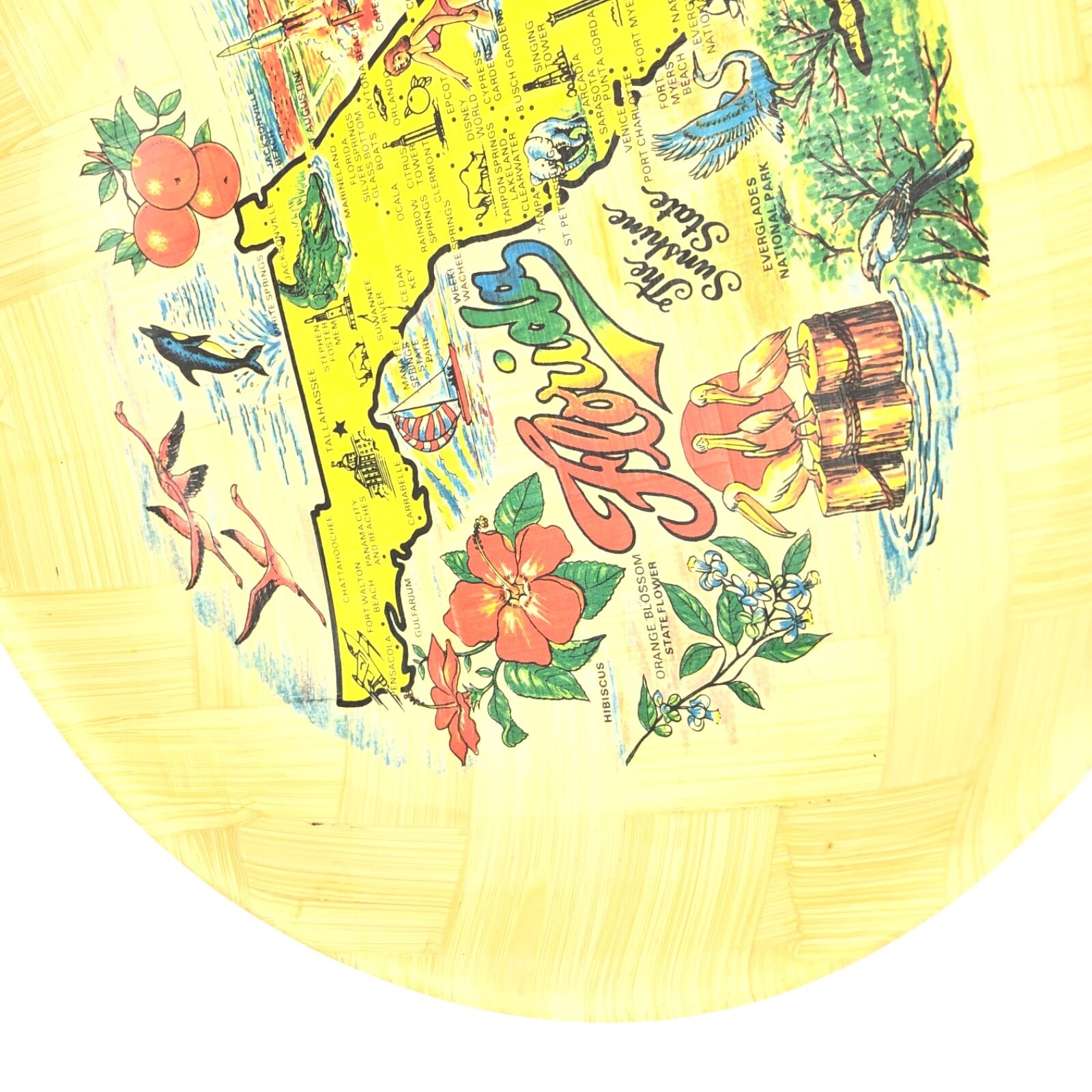 Vintage Florida Souvenir Bamboo Bowl - Rainbow Colored Illustrations - Round