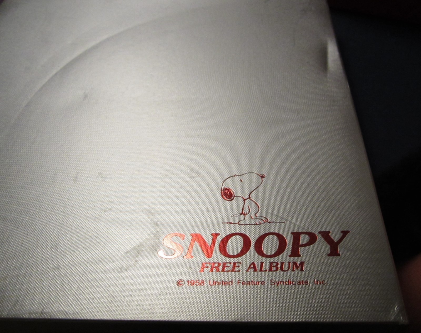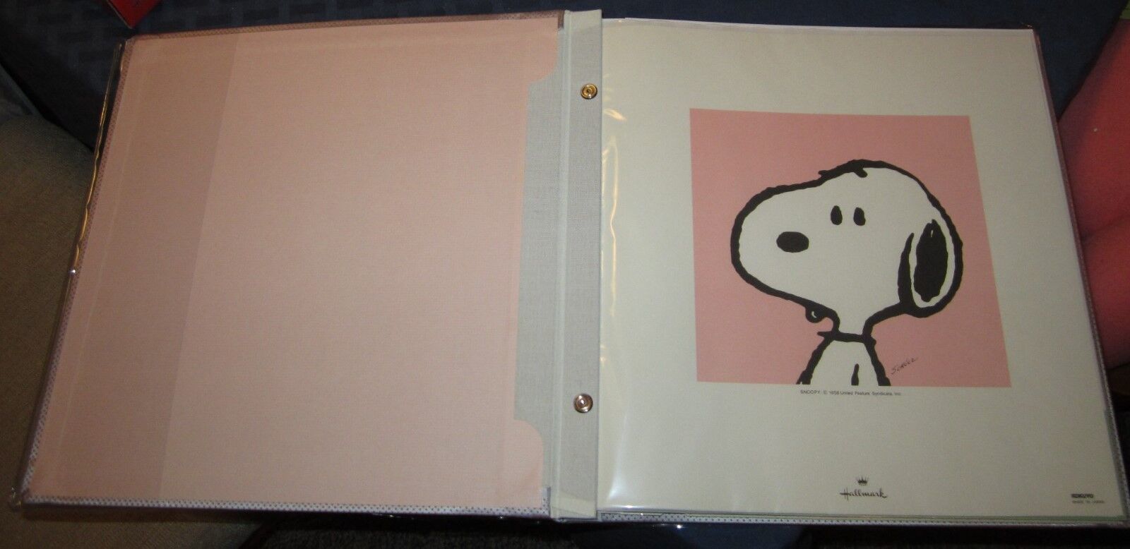 Album cover has a slipcover to keep it clean. Snoopy on front cover is cotton, padded with satin bow.