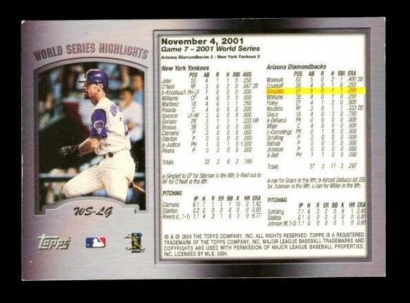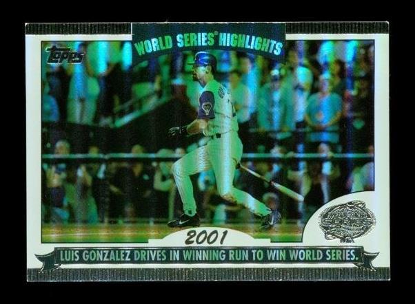 2001 Topps World Series Highlights Luis Gonzalez #WS-LG Refractor Baseball Card. Raw and ungraded. Smoke and pet free.