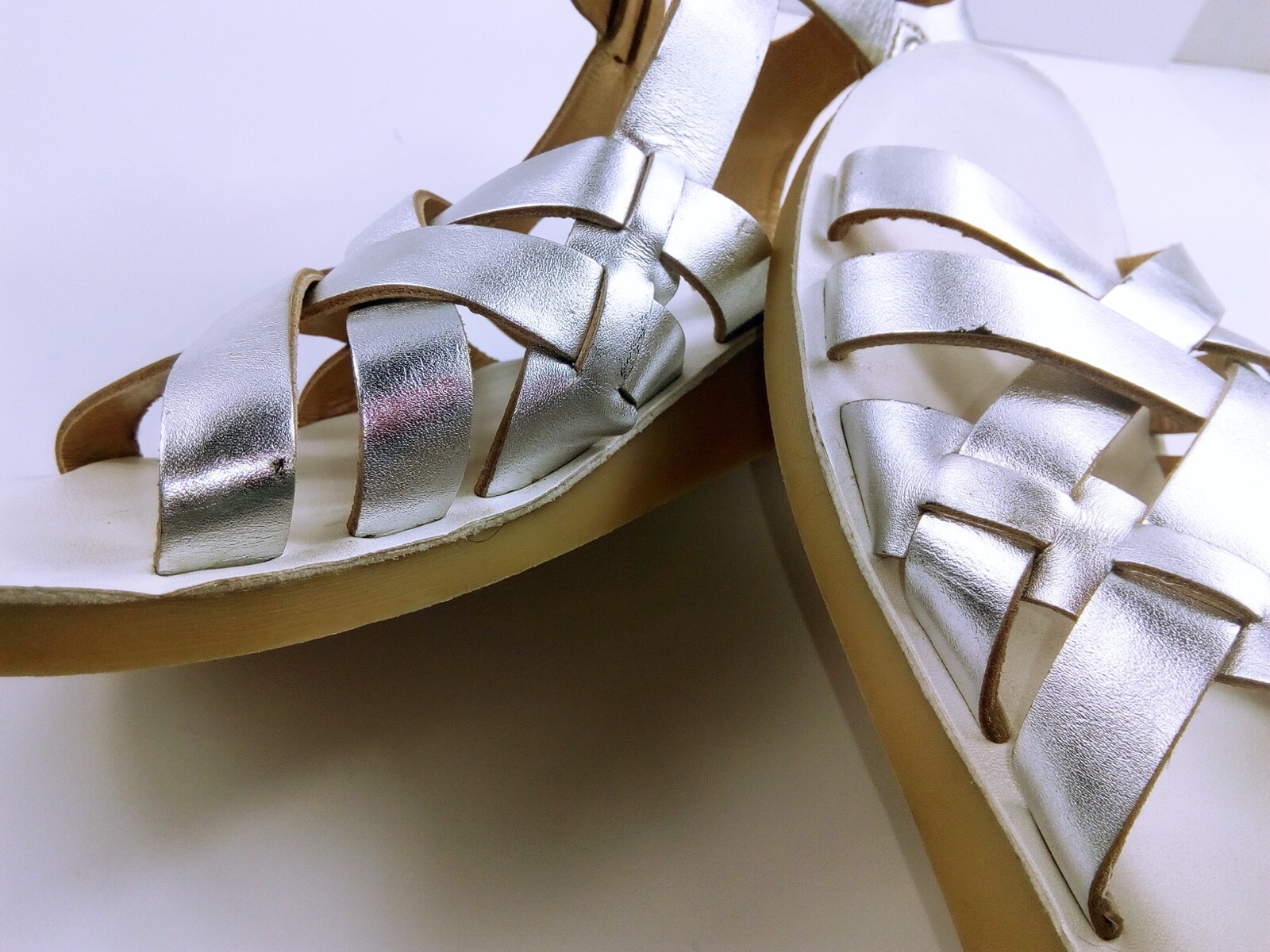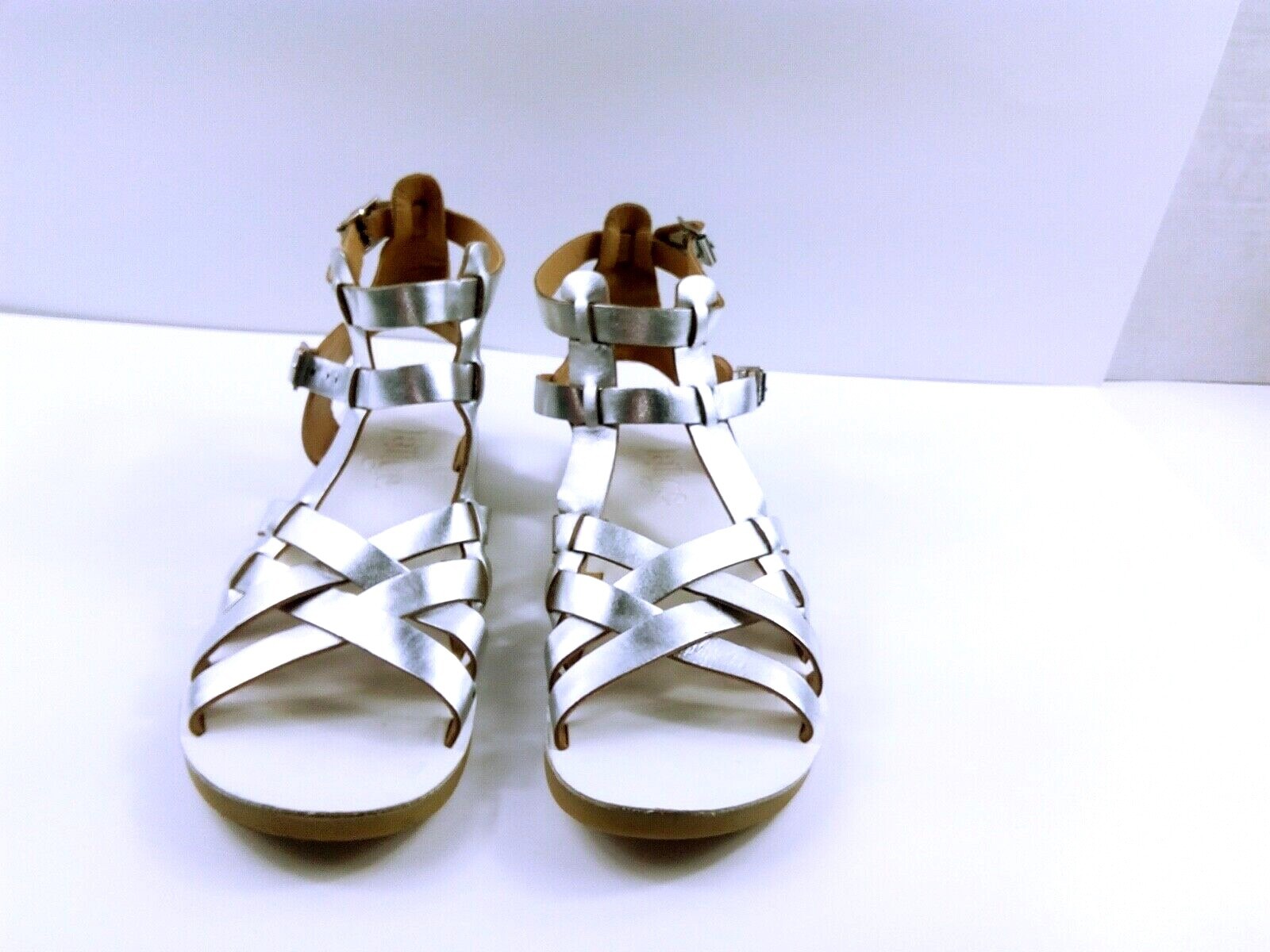 Anthropologie Latigo Wow Women Shoes Silver 8M Leather Straps Gladiator Sandals