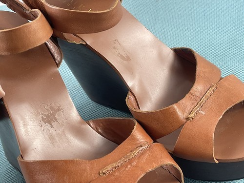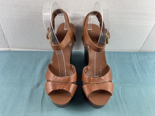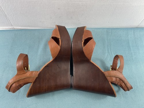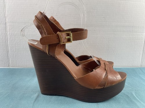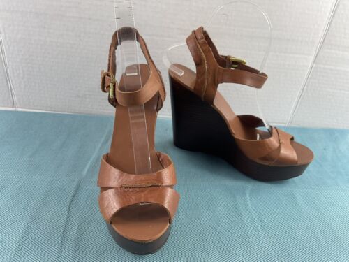 Lauren Ralph Lauren Deidre Womens Shoes Brown 8B Leather Slingback Wedge Sandals