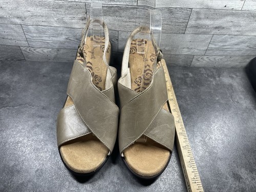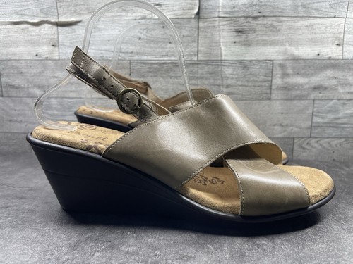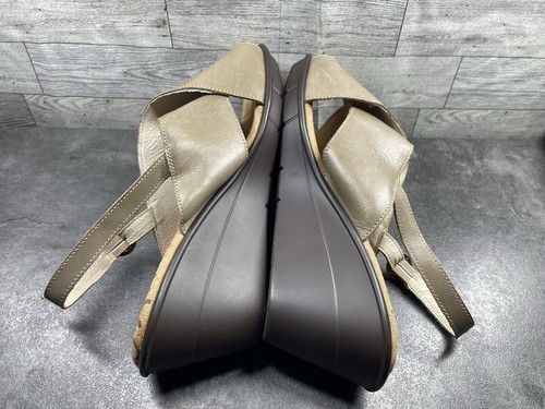 Propet Sandals Women 11 Wide EE 2E Luna Shoes Brown Gray Leather Wedge Comfort