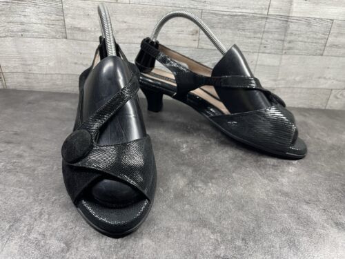 Beautifeel Stefania Heel Sandals Women 9.5M Shoe Black Leather Slingback Comfort