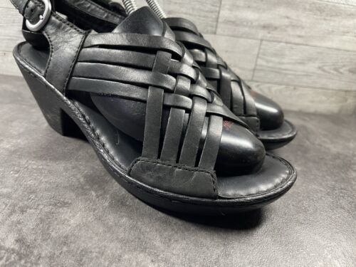 Børn Born Valakas Sandals Womens 9M Shoes Black Leather Strappy Slingback Heel