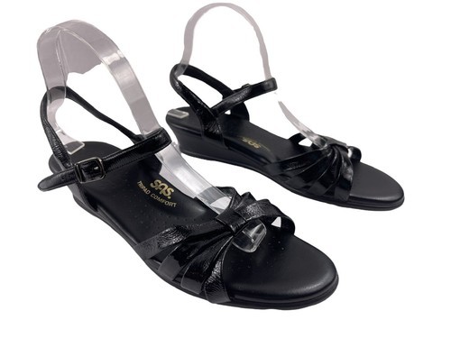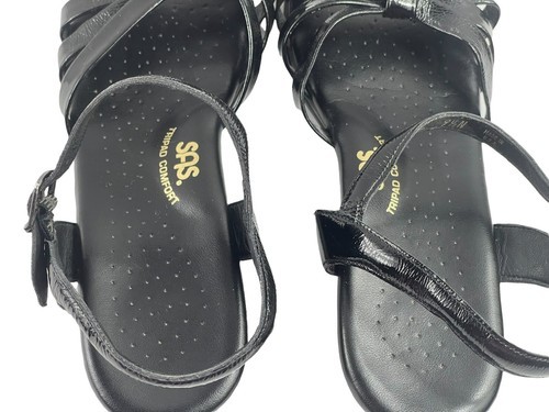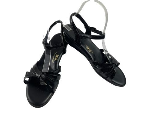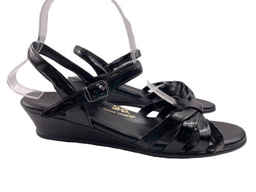 SAS Strippy Quarter Strap Women Shoes Black 9.5 N Tripad Slingback Wedge Sandals